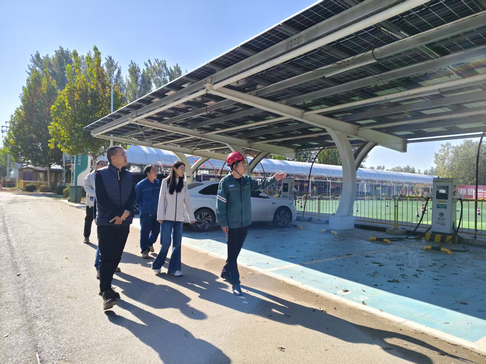 活动最后一站,众人来到杨屯村光储充一体化超充示范站。该站通过“光伏优先、储能补充、市电后备”的用能模式,实现了清洁能源的高效利用,既是供电公司服务乡村的生动实践,也为企业绿色用能提供了可复制的样板。