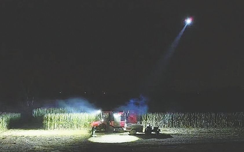 今年秋收遭遇连阴天。故城县调配10余家企业的30多台烘干设备,日烘干能力5000吨,24小时为农户提供烘干、收购服务。为保障夜间收割作业安全,国网衡水供电公司成立了助农服务队。10月21日19时,武邑县王洼村村民王新建的玉米地里,一台照明无人机悬挂在收割机上方,不到1个小时,5亩玉米便顺利收割完了。
