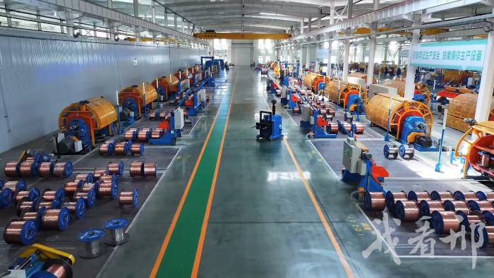 位于南和区的河北六二零一铝合金导线有限公司高端转型环保节能铝合金电缆及导体项目是省重点在建项目。图为该项目1号车间内自动化生产线正在有条不紊地运行。黄涛、耿昭 摄