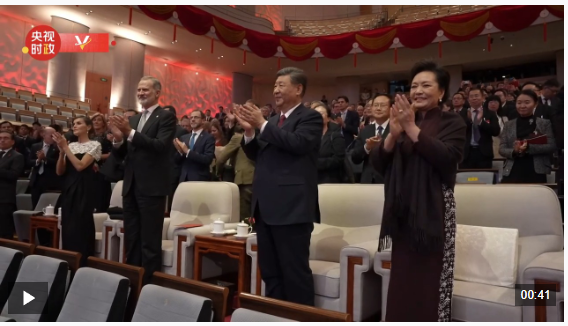 11月12日晚,国家主席习近平和夫人彭丽媛在北京国家大剧院同西班牙国王费利佩六世夫妇一同观看西班牙皇家剧院音乐会。