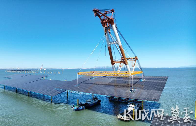 正在秦皇岛市昌黎县海域建设的海上光伏项目。新华社发