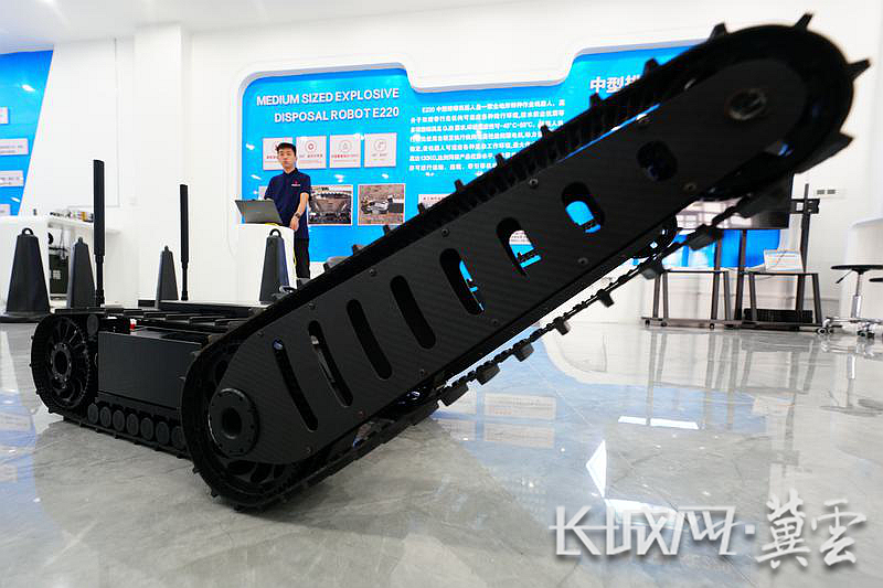邢台市柏乡县一家机器人科技公司员工正在对地震搜索机器人进行导航训练。新华社发