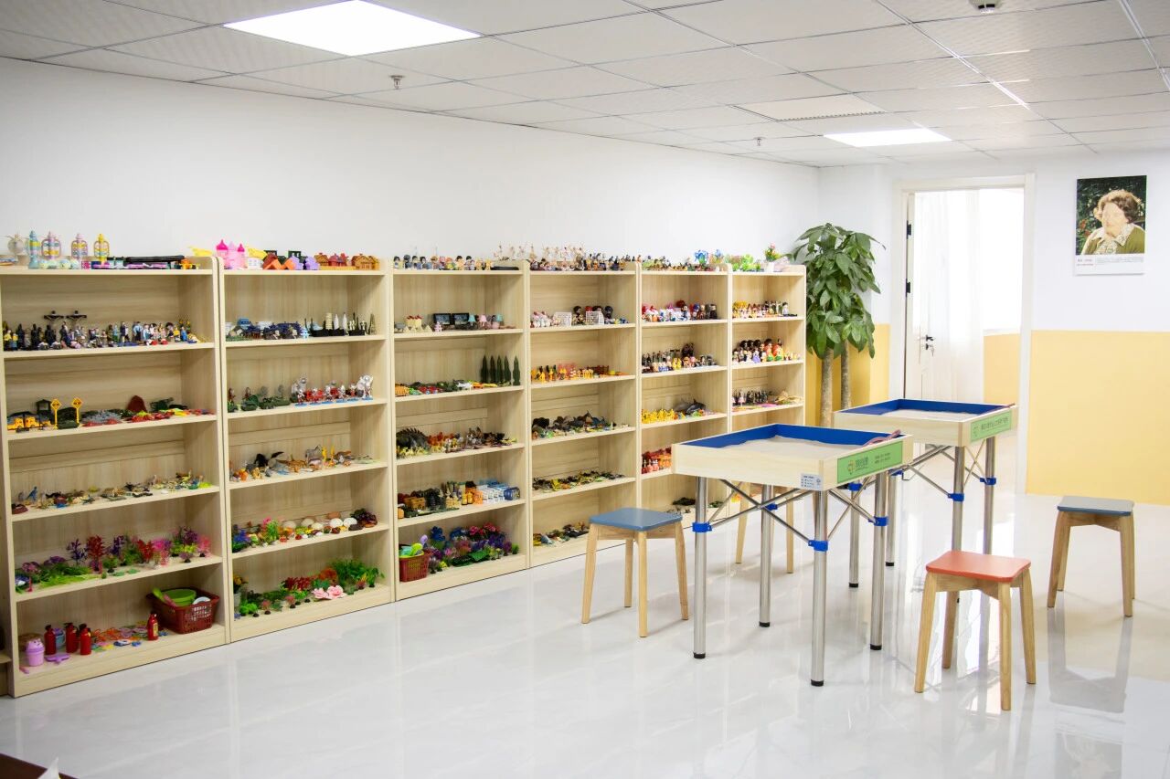 沙盘游戏区静置着一方小小世界,山川、河流、房屋、人物……都是内心世界的投影。拨开心灵的迷雾,让隐秘的情绪被温柔治愈。