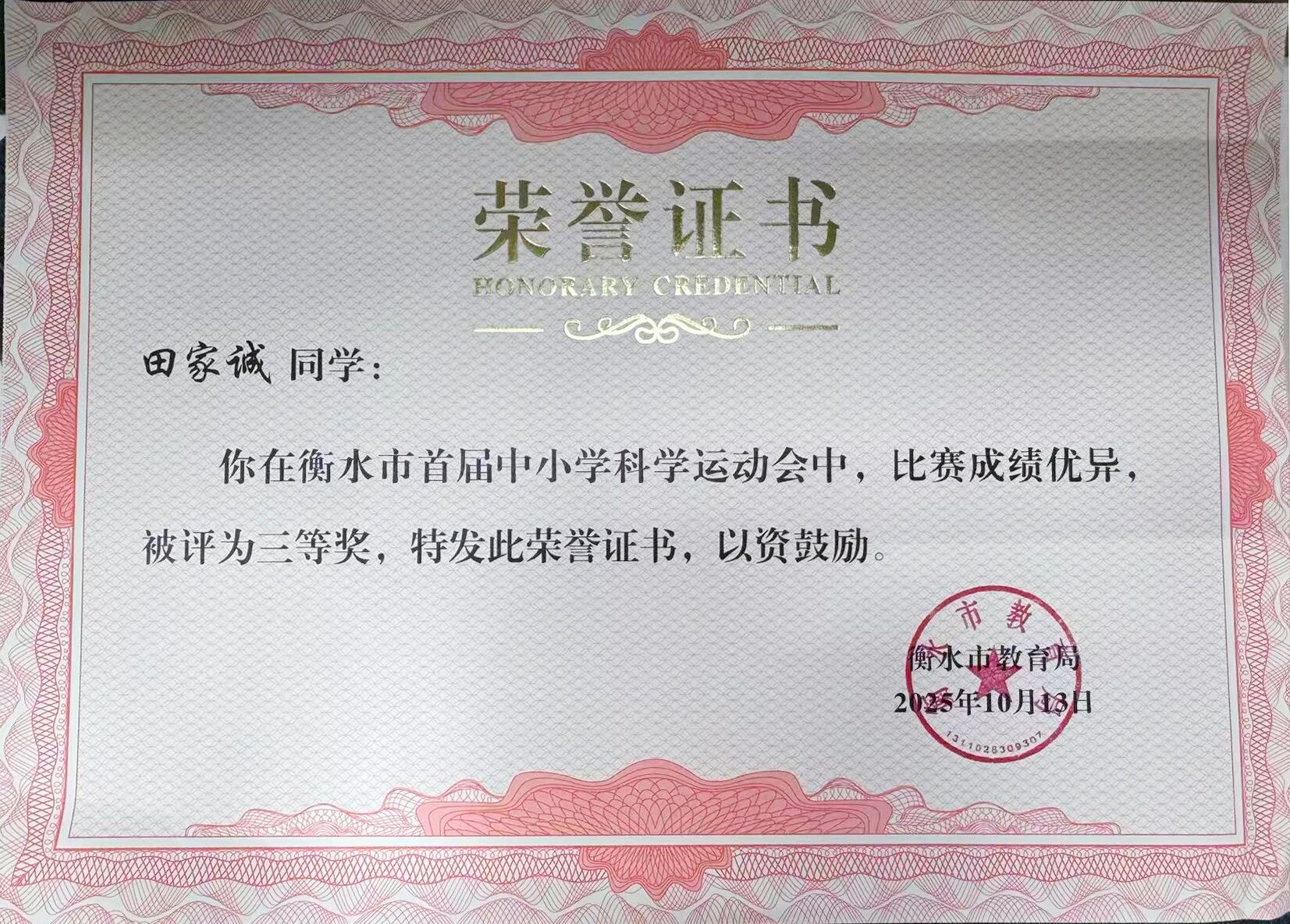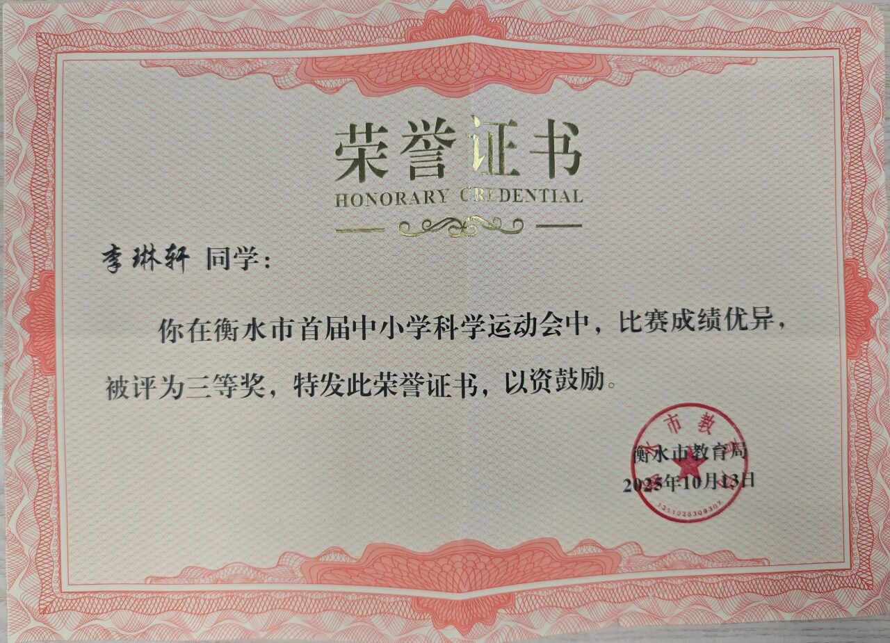在河北省第四届学生军事训练营比赛中,衡水十三中荣获国防知识竞赛二等奖、轻武器实弹射击二等奖、识图用图比赛三等奖和团体三等奖的优异成绩,十三中学生聂博文荣获优秀营员称号;在河北省教育厅主办的河北省第35届“雏凤杯”中小学生作文大赛中,十三中王少华同学荣获优秀奖;在河北省第十届微课大赛省市两级评选中,十三中李超敏老师荣获市级三等奖;在衡水市首届中小学科学运动会上,十三中李琳轩、刘筱畅、李冠成、任轩德、候昕杭、田家诚、董昱含等七位同学荣获三等奖;在衡水市教育局主办的“燕赵杯”成语故事主题书画篆刻大赛中,十三中学生张雨诺的作品《围魏救赵》荣获中学组软笔类三等奖。