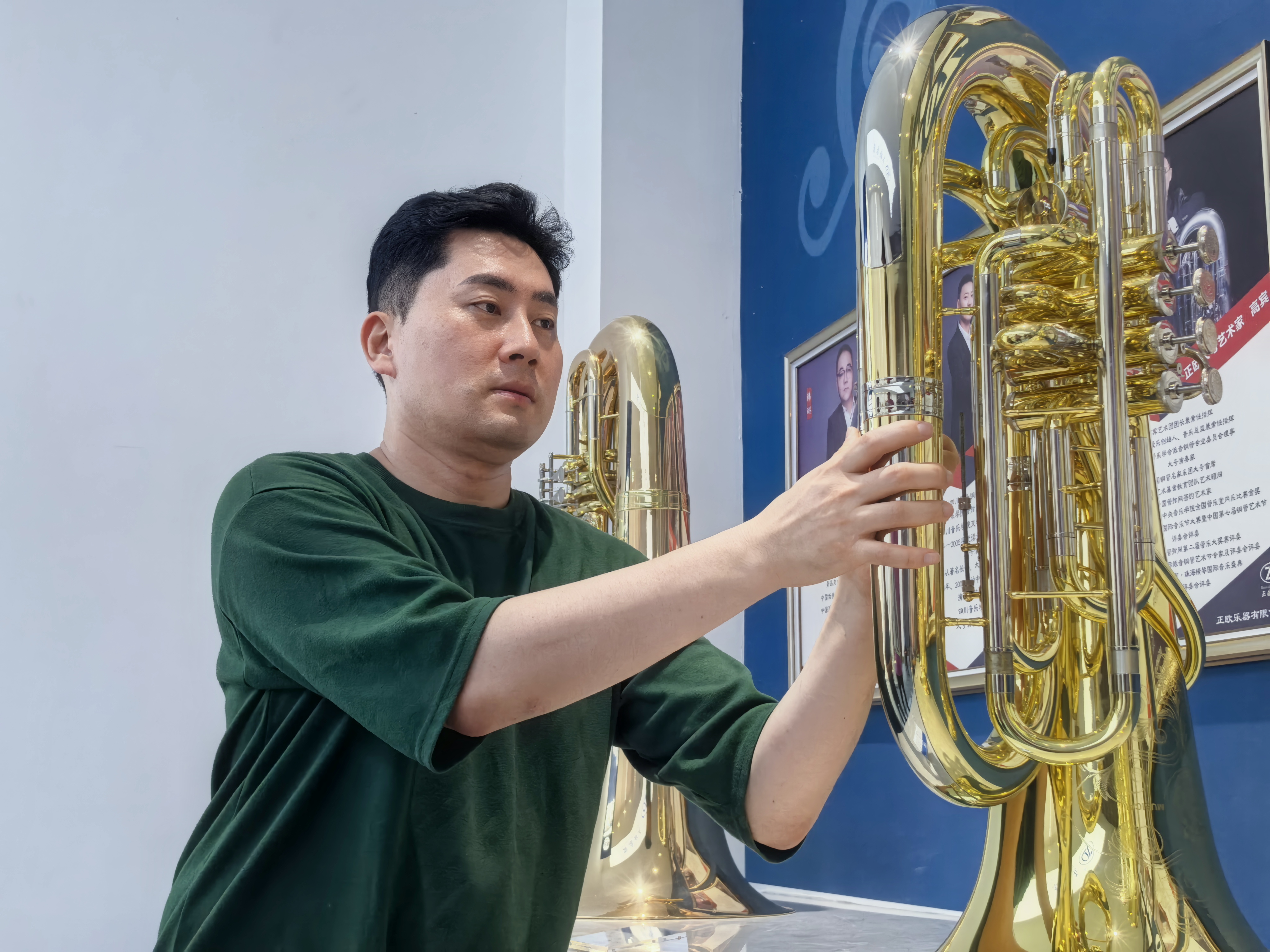 在文志雄参与研发的众多乐器中,他最偏爱也最引以为傲的是一款新型树脂材质的上低音号。这款乐器的诞生背后有着特别的故事。在研发过程中,团队面临着如何在保证树脂材质轻便、耐用的同时,又能让乐器发出接近铜管乐器纯正音色的难题。文志雄和研发团队经过无数次的试验和调整,不断改进树脂材料的配方和乐器的结构设计。最终,他们成功研发出了这款既具有树脂材质优势,又能发出优美音色的上低音号。