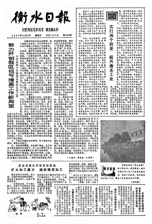 1983年9月21日《衡水日报》