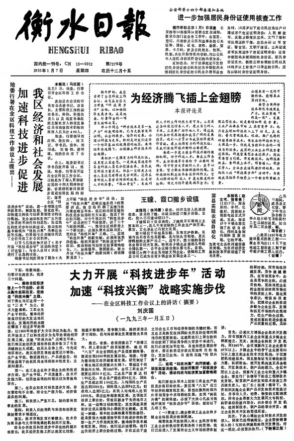 1993年1月7日《衡水日报》
