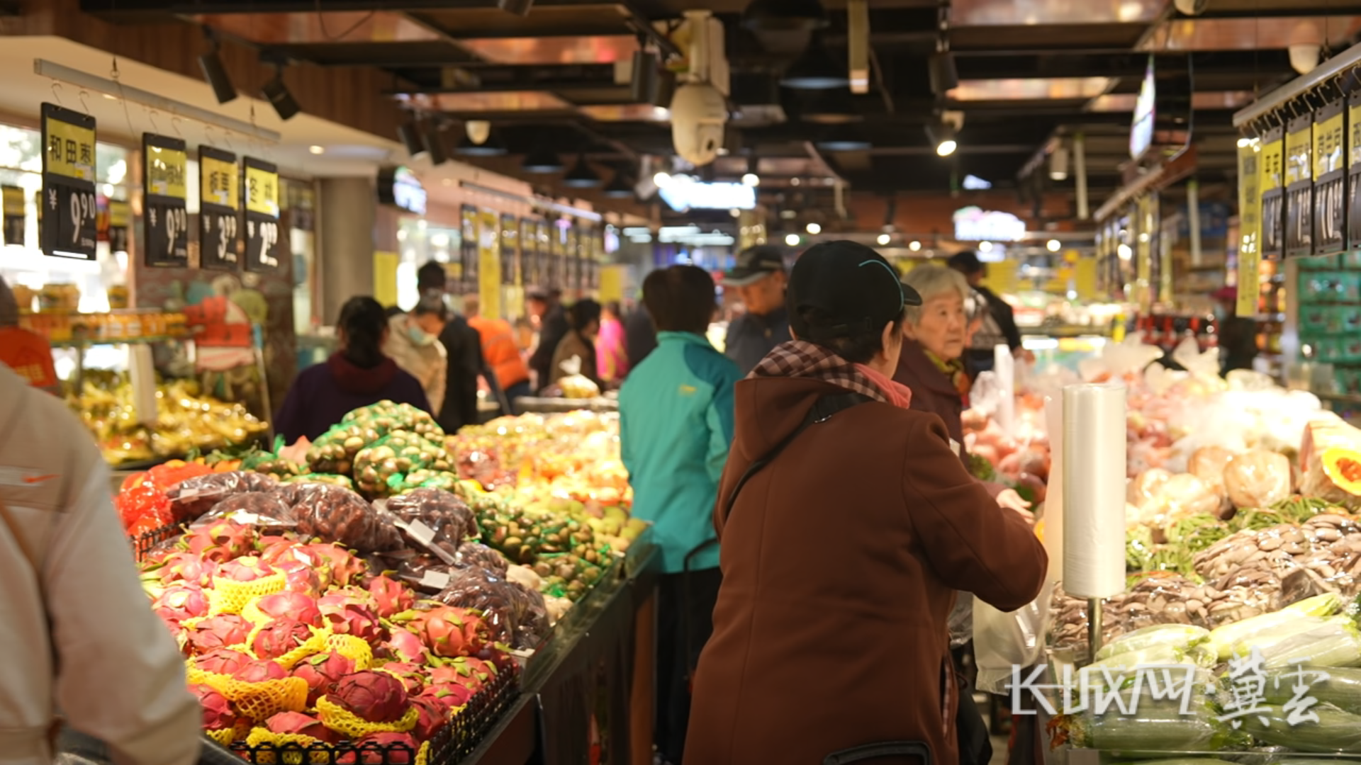 清晨八点半,玉成社区食堂斜对面的果蔬佳便民市场内人流涌动,新鲜蔬果摆满摊位。“基本上两三个小区间就有一个便民市场,居民买菜方便,我们生意也好。”市场理货员吕素存笑着说。