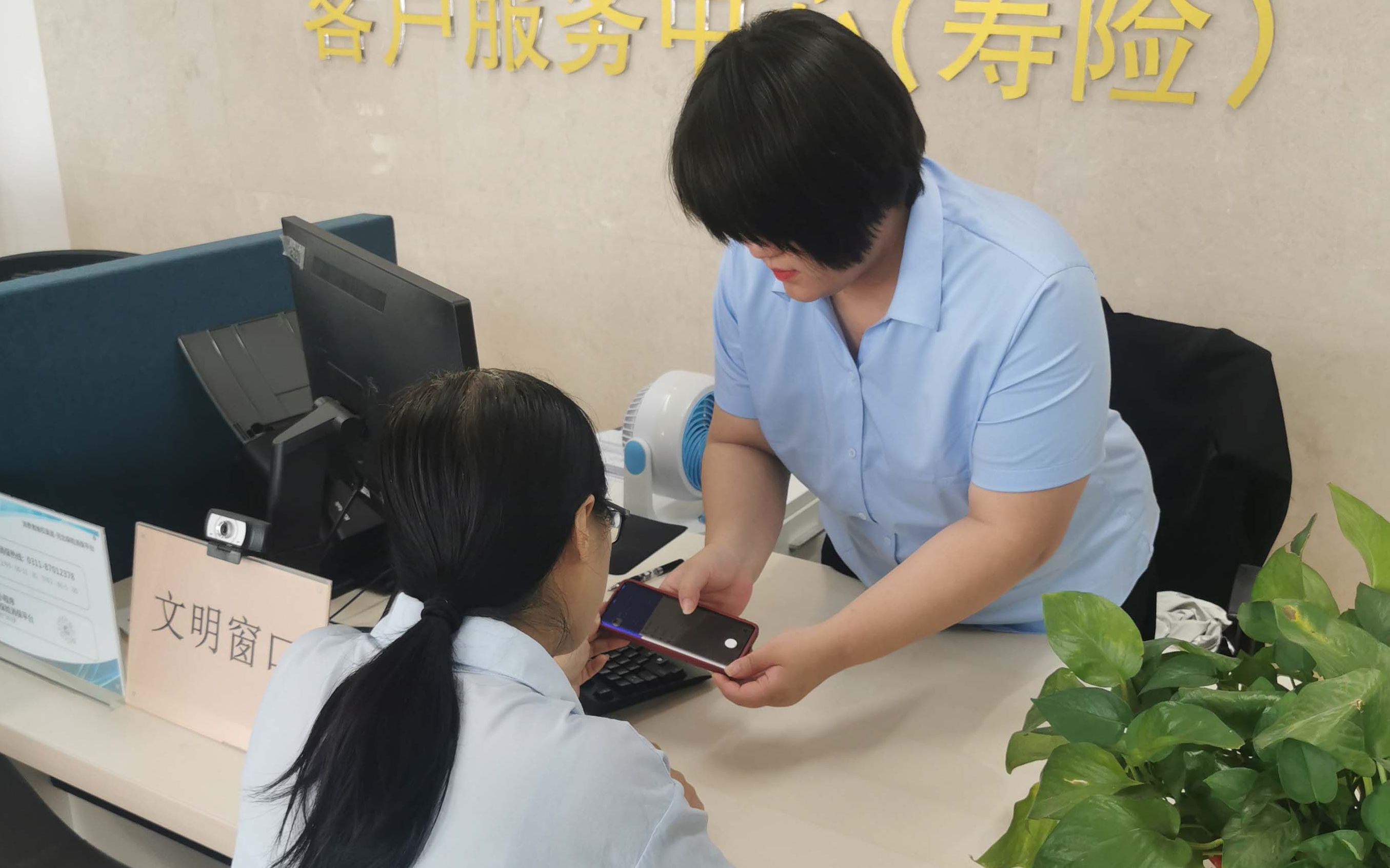 柜面员工为客户提供热情优质服务。