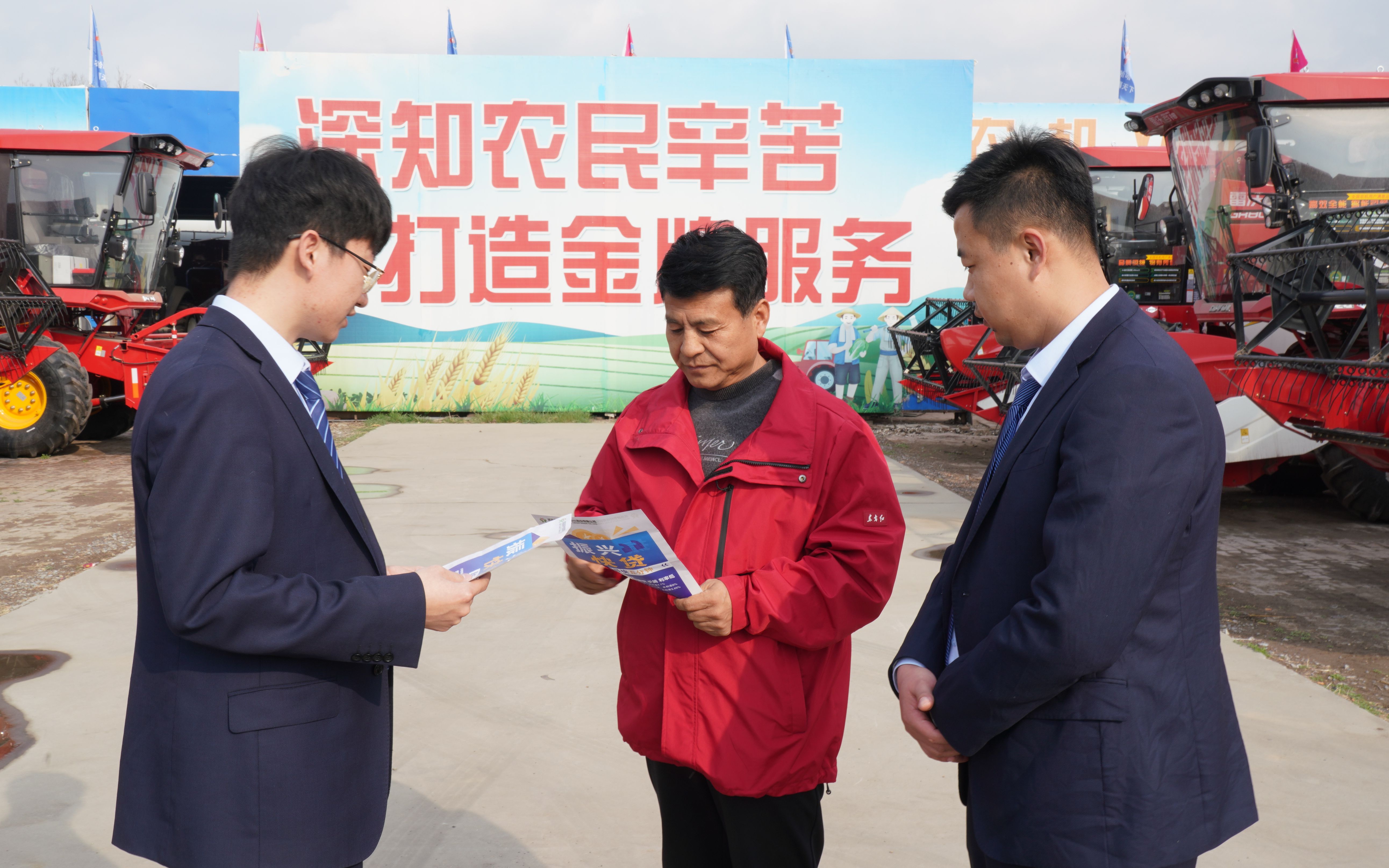 图:武邑联社工作人员向农户讲解金融政策,精准对接农业生产金融需求。