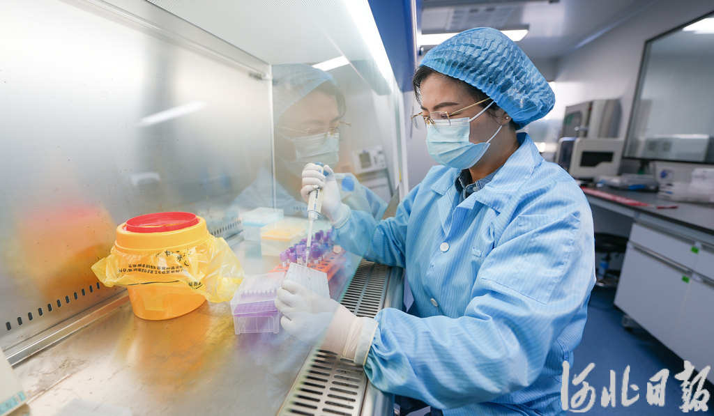 11月21日,在雄安妙心生物科技有限公司基因检测实验室内,河北工程大学医学院检验系教授王珍在进行病原微生物核酸提取工作。河北日报见习记者李畅摄