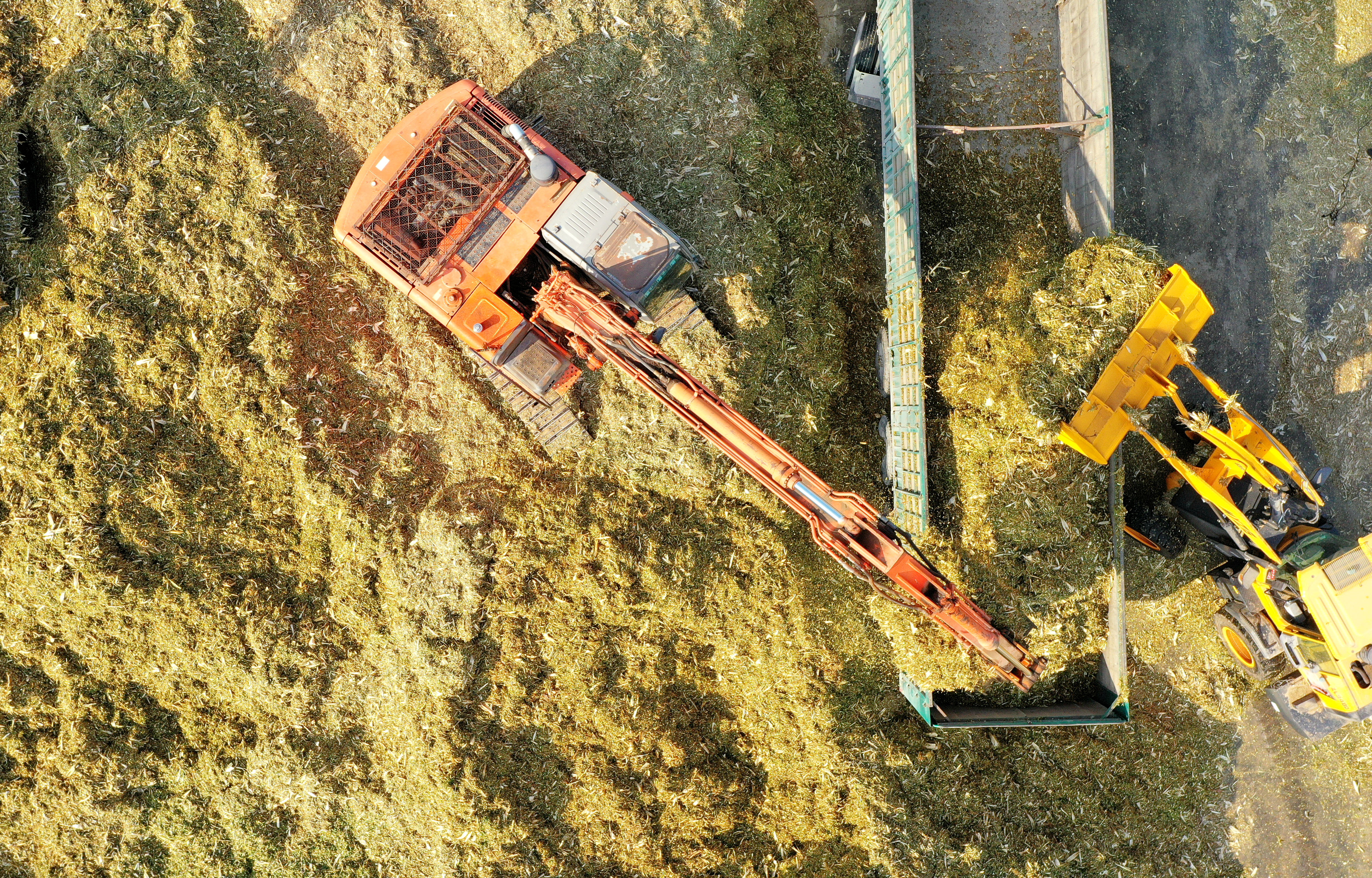 11月26日,走进衡水市阜城县崔家庙镇张家桥村的肉牛养殖基地,只见大型铲车正将一堆经过处理的黄褐色饲料填入送料机,伴随着机器轰鸣,这些散发着淡淡酸香气的饲料被均匀地撒入食槽,膘肥体壮的肉牛们纷纷探过头来,大快朵颐。