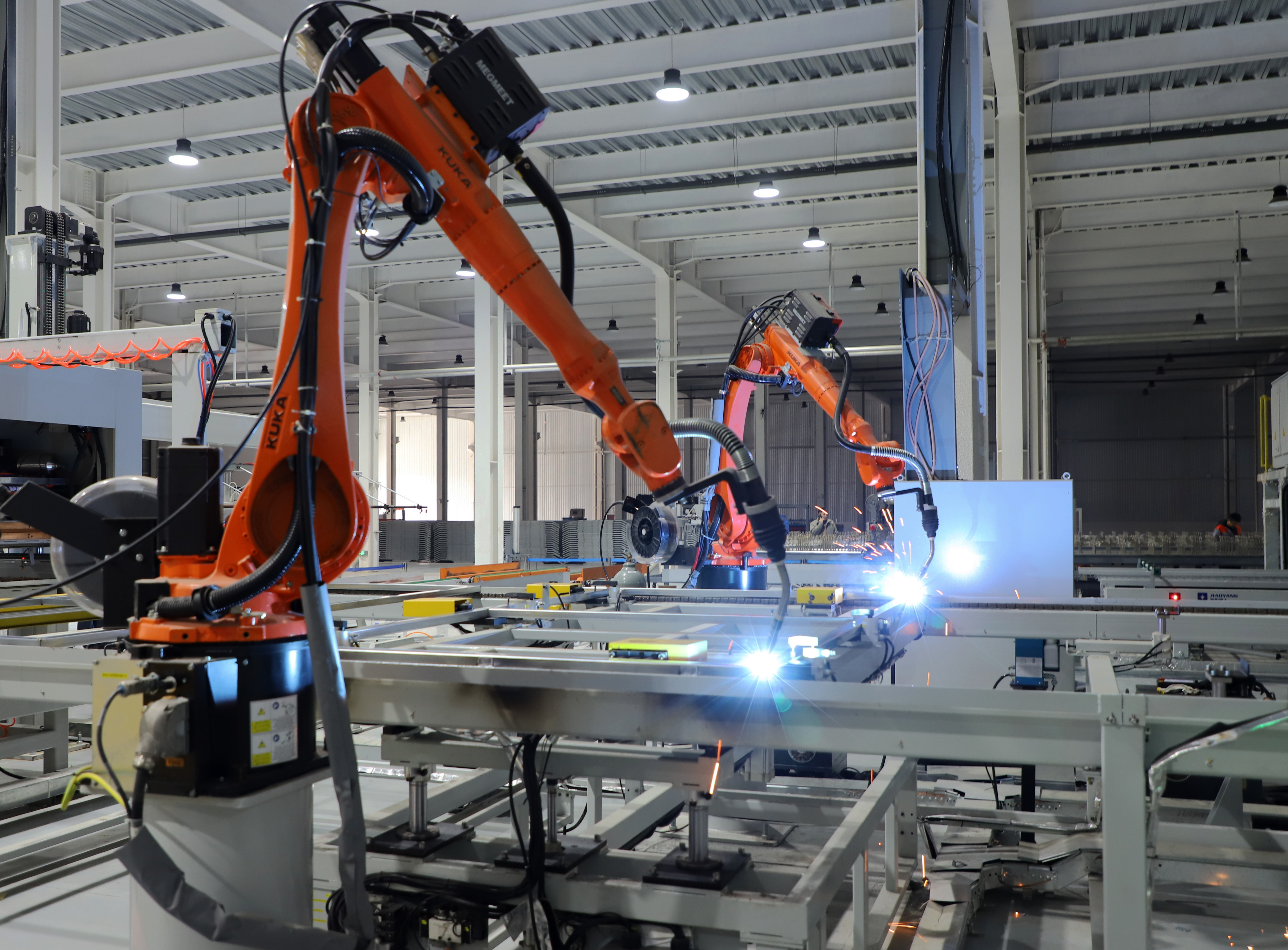 作为产业智造标杆,工厂的共享智能铁路护栏网焊接生产线系全国首条护栏网类自动化焊接生产线。通过攻克高速高精度寻位、低热输入焊接等关键技术,生产线具备焊接质量高、变形小、效率高等优势,重塑了护栏网生产工艺标准。