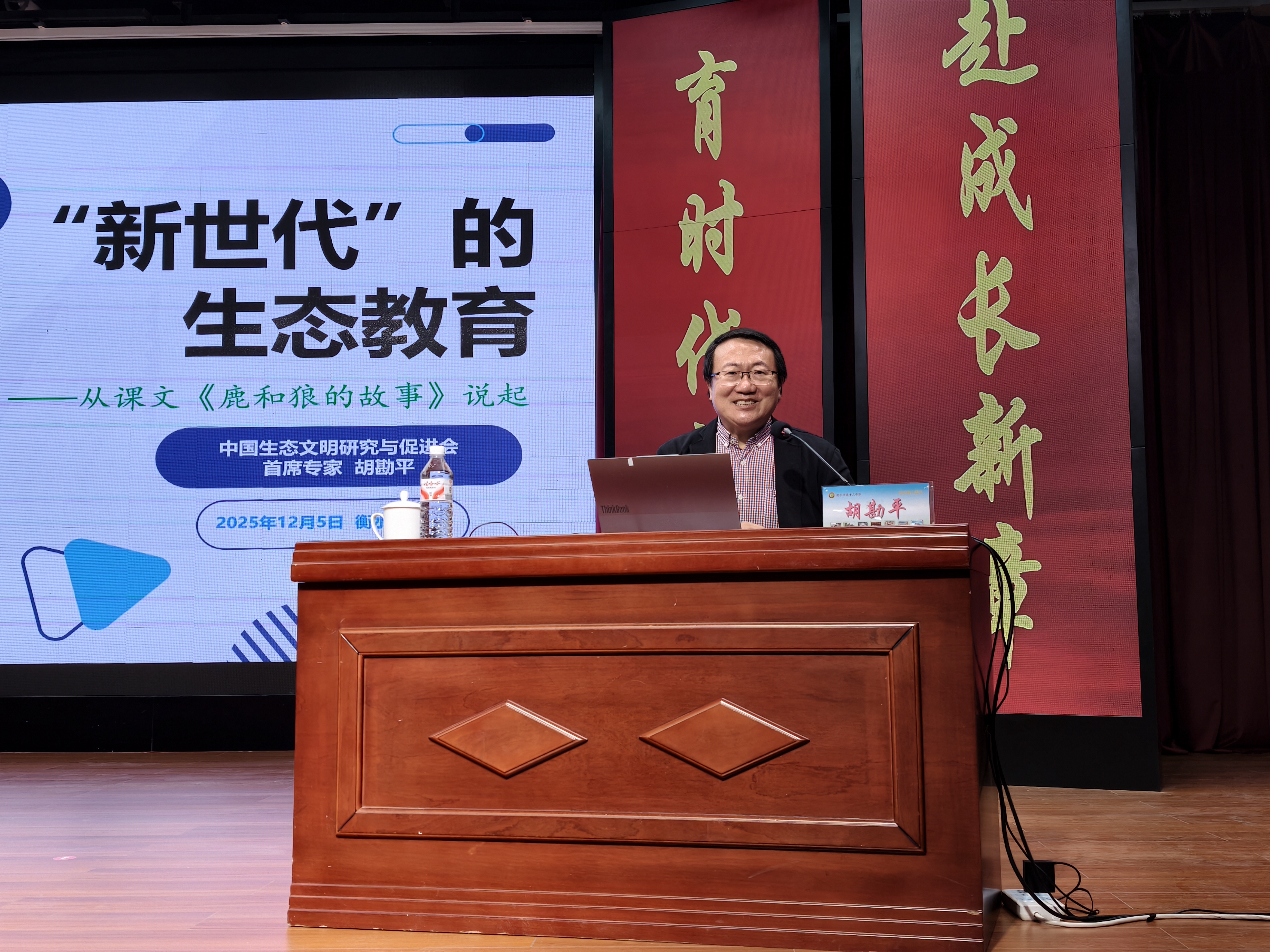 12月5日,中国生态文明研究与促进会首席专家、北京林业大学研究员胡勘平教授走进衡水市第十三中学,为全校师生带来了一场题为“新世代的生态教育”的专题报告。