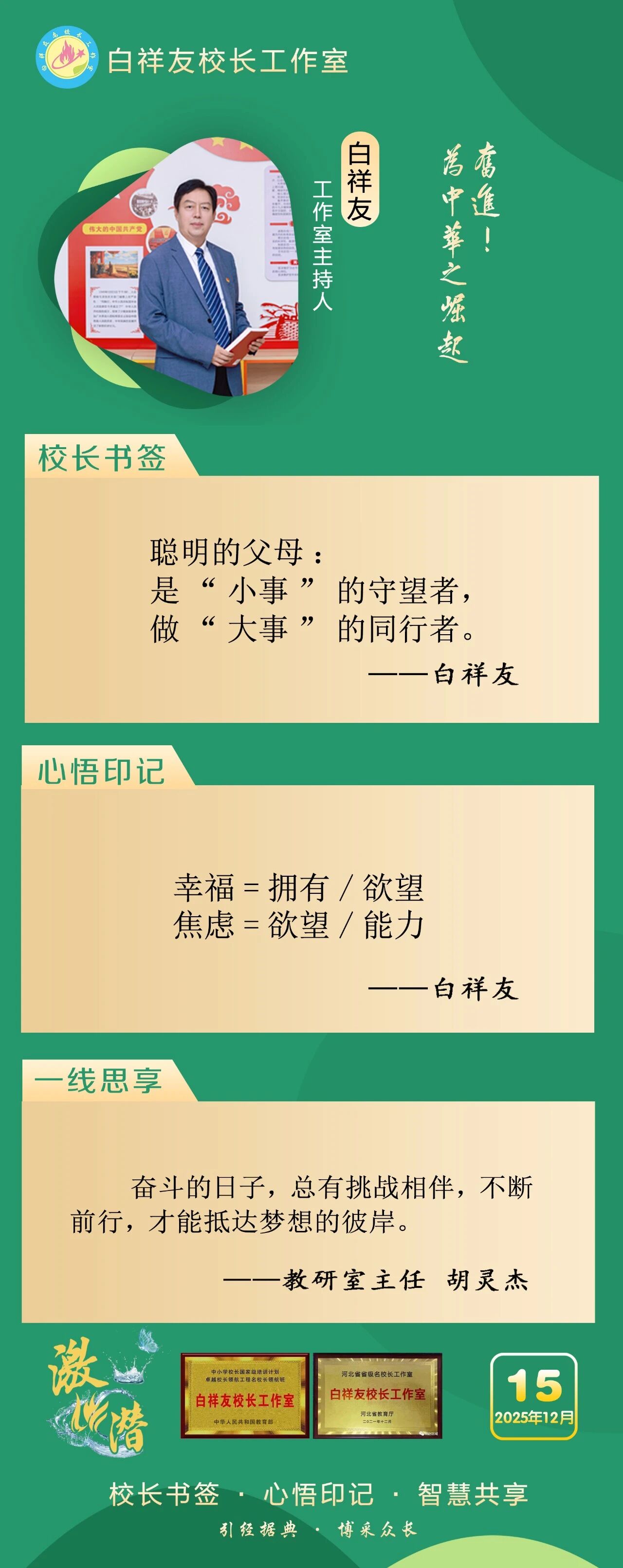 “白祥友校长工作室”成立于2019年4月,是教育部“国培计划”中小学名校长领航工程、河北省首批名校长工作室,目前省内外成员校59所。工作室坚持“资源共享、智慧共融、互助共赢”理念,已成为思想碰撞的交流场,资源共享的品牌站,成果展示的辐射源。