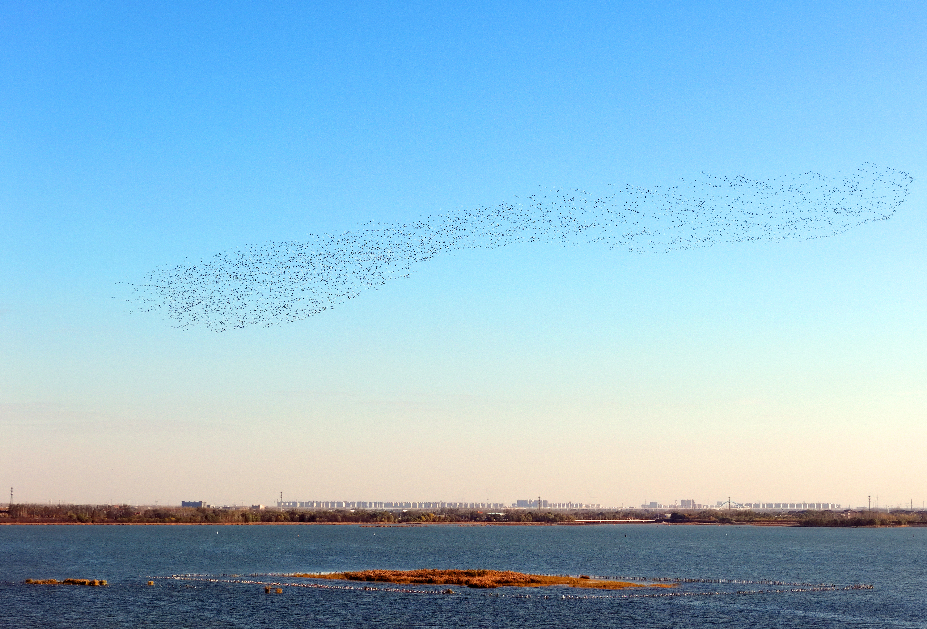 “每天清晨和傍晚,‘鸟浪’都会准时登场,这几天正是候鸟过境的关键时候。”衡水滨湖新区资源保护局副局长张余广举着望远镜,一边记录候鸟种类与数量,一边解析这一奇景的成因。在他看来,衡水湖的“吸引力”源于三重因素:充足的鱼虾资源是核心基础,丰富的水生生物让不同候鸟在此集结成庞大种群;集群是候鸟的生存智慧,长途迁徙中抱团飞行既能借气流节省体力,又能共同抵御天敌;部分鸟类起飞时引发的“连锁反应”,则让万千羽翼同步振翅,最终造就了规模浩大的“鸟浪”。