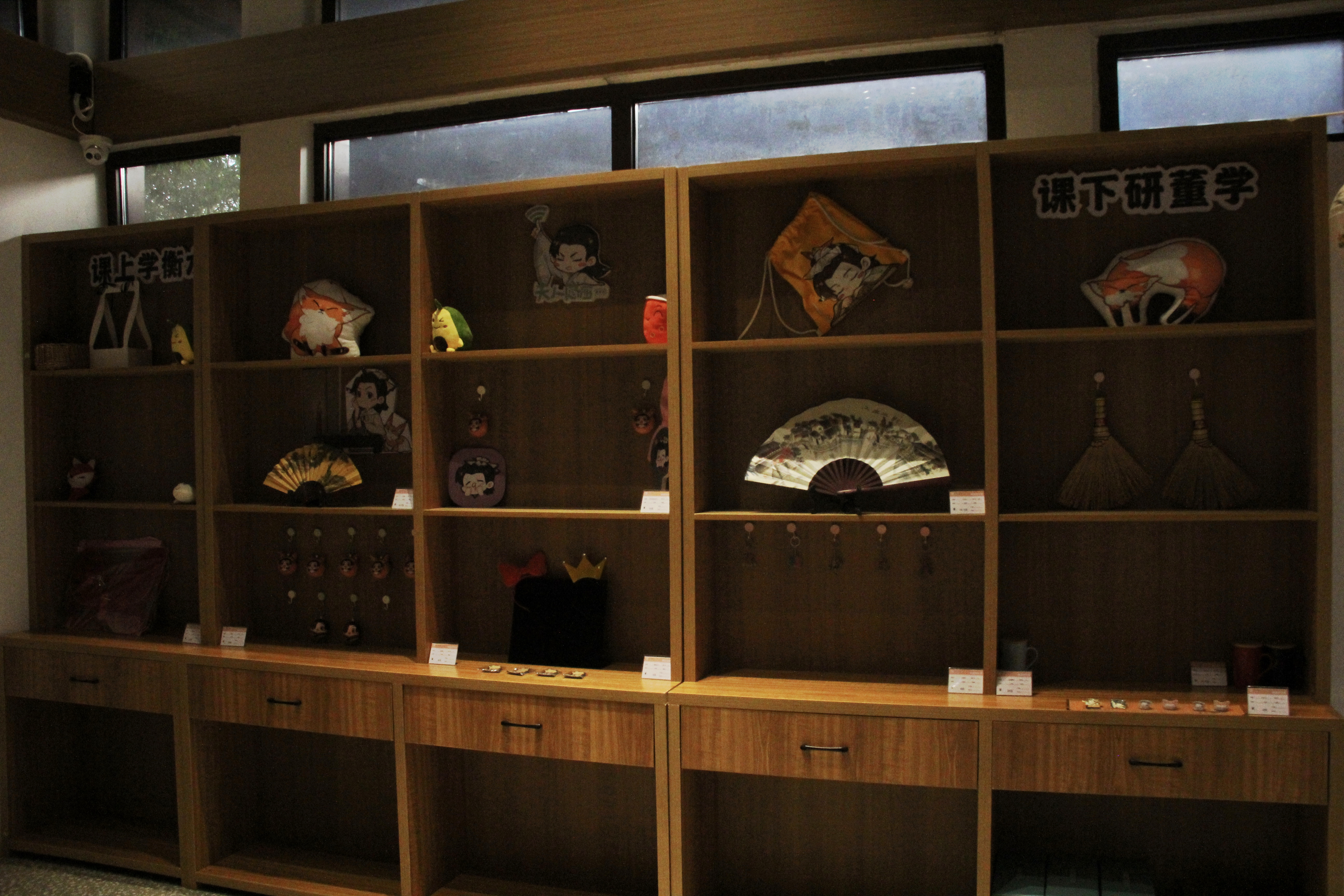 在讲解员闫冰洁的引导下,跨过董学园的序志门,来到园区西侧,便可见董礼文创店乐乎草屋。根据董仲舒的历史形象,景区独立开发了“董子有礼”四大文创系列,共包括百余件文创产品。