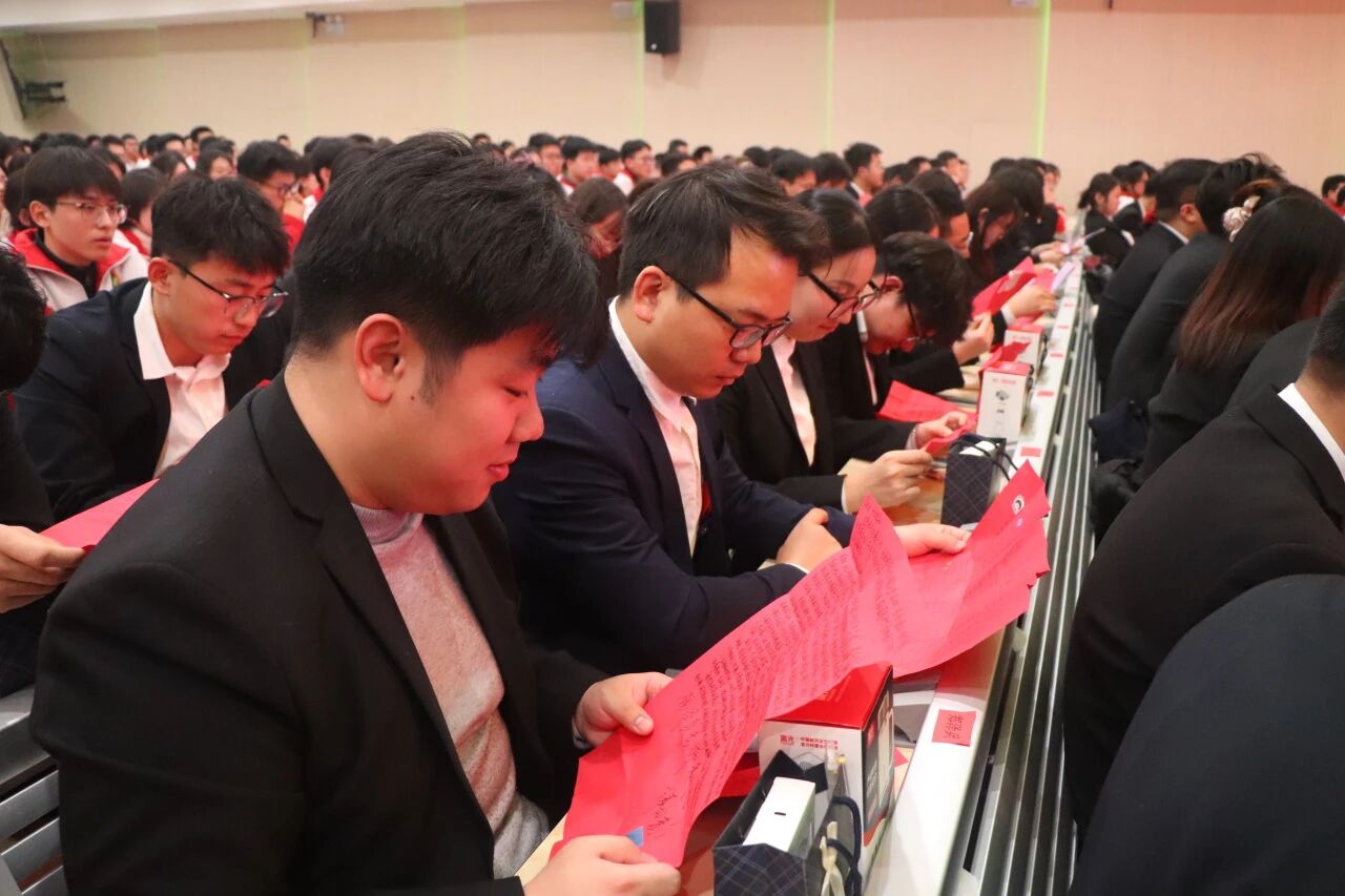更令人动容的是,班主任们现场拆阅本班学生亲手书写的信笺,字里行间充满真挚的感激与祝福,许多老师感动盈眶,场面温馨感人。