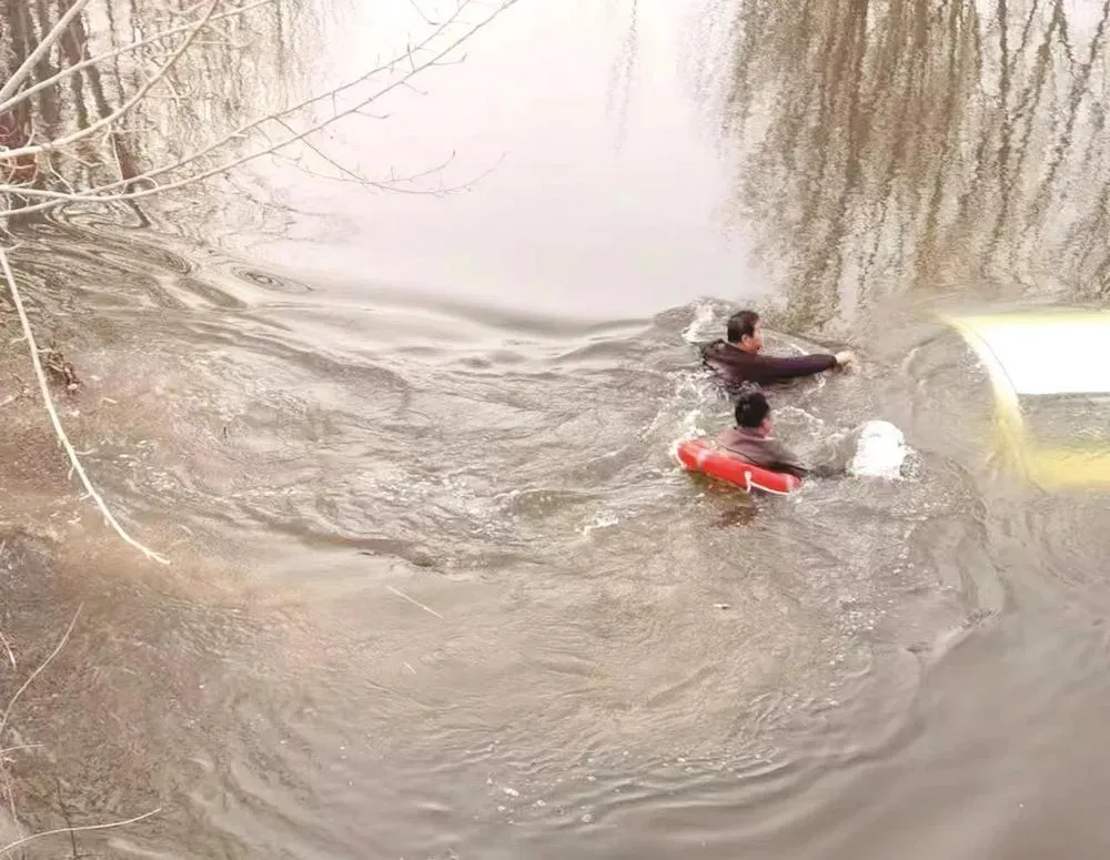 李洪彬等人成功将落水司机救上岸