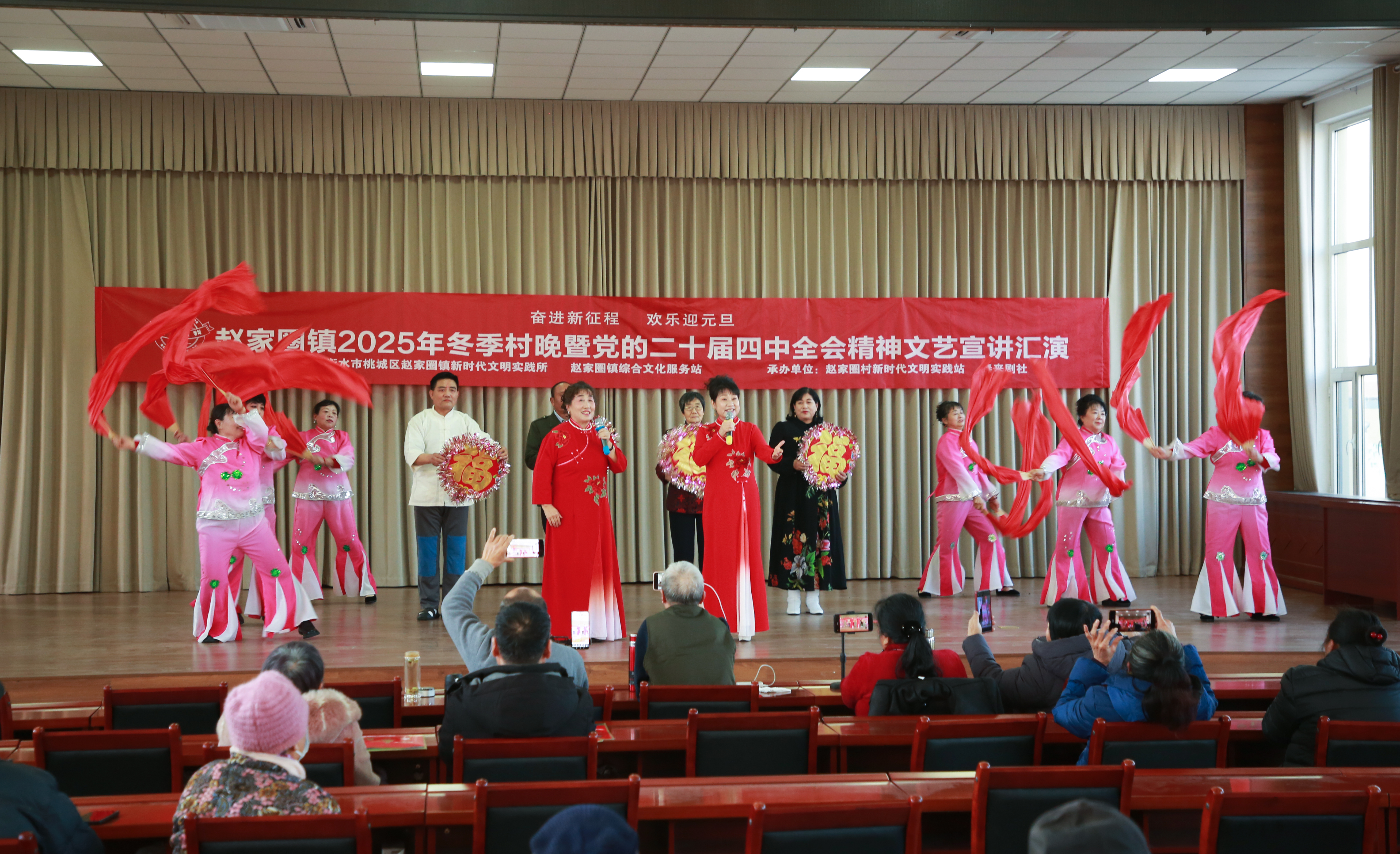 12月30日下午,赵家圈镇新时代文明实践所礼堂内热闹非凡,由赵家圈镇新时代文明实践所、赵家圈镇综合文化服务站主办,赵家圈村新时代文明实践站、春来剧社承办的“奋进新征程 欢乐迎元旦”2025年冬季村晚暨党的二十届四中全会精神文艺宣讲汇演在这里精彩上演。