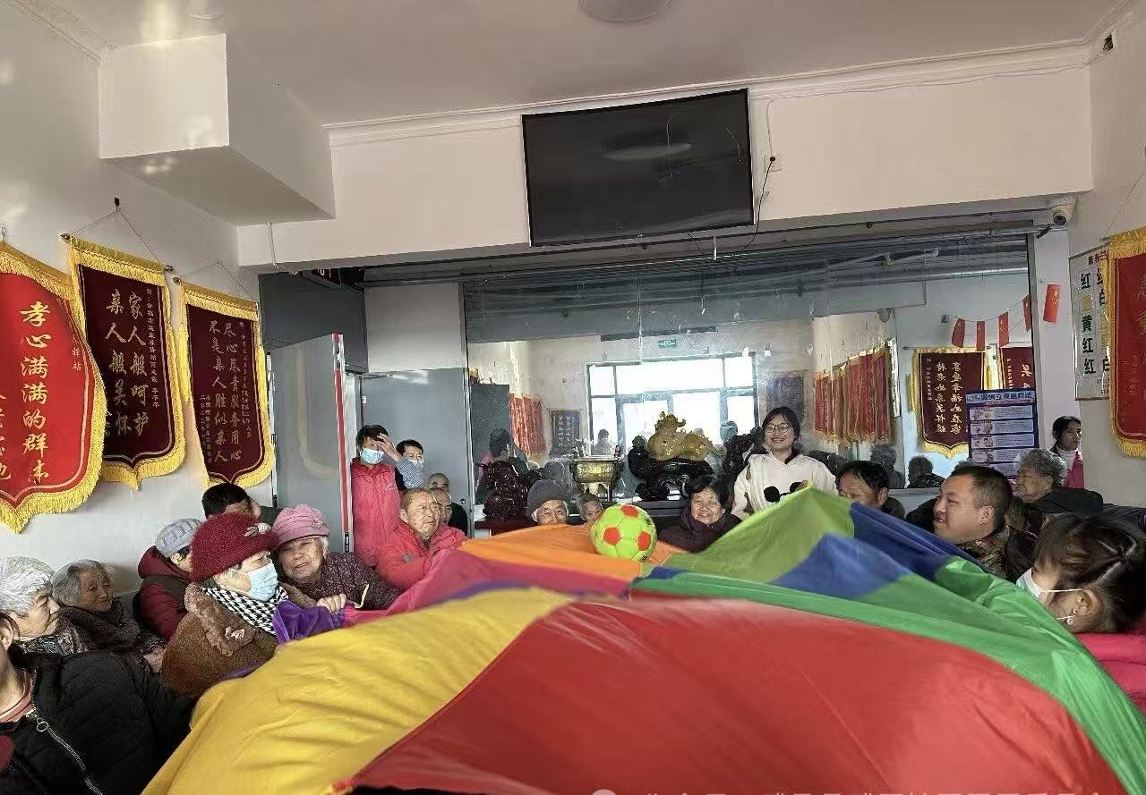 一进康养驿站,志愿者们就与老人们围坐成圈,一场热闹的兜彩球游戏即刻开场。老人们精神头十足,抬手接球、俯身捡球,动作利落不输年轻人,每接住一球,现场就响起一阵欢呼喝彩。欢声笑语里,大家你一言我一语唠起家常,志愿者讲着身边新鲜事,老人们分享着一辈辈传下来的人生故事,暖心话语驱散冬日寒凉,喜庆氛围在驿站里越飘越浓。