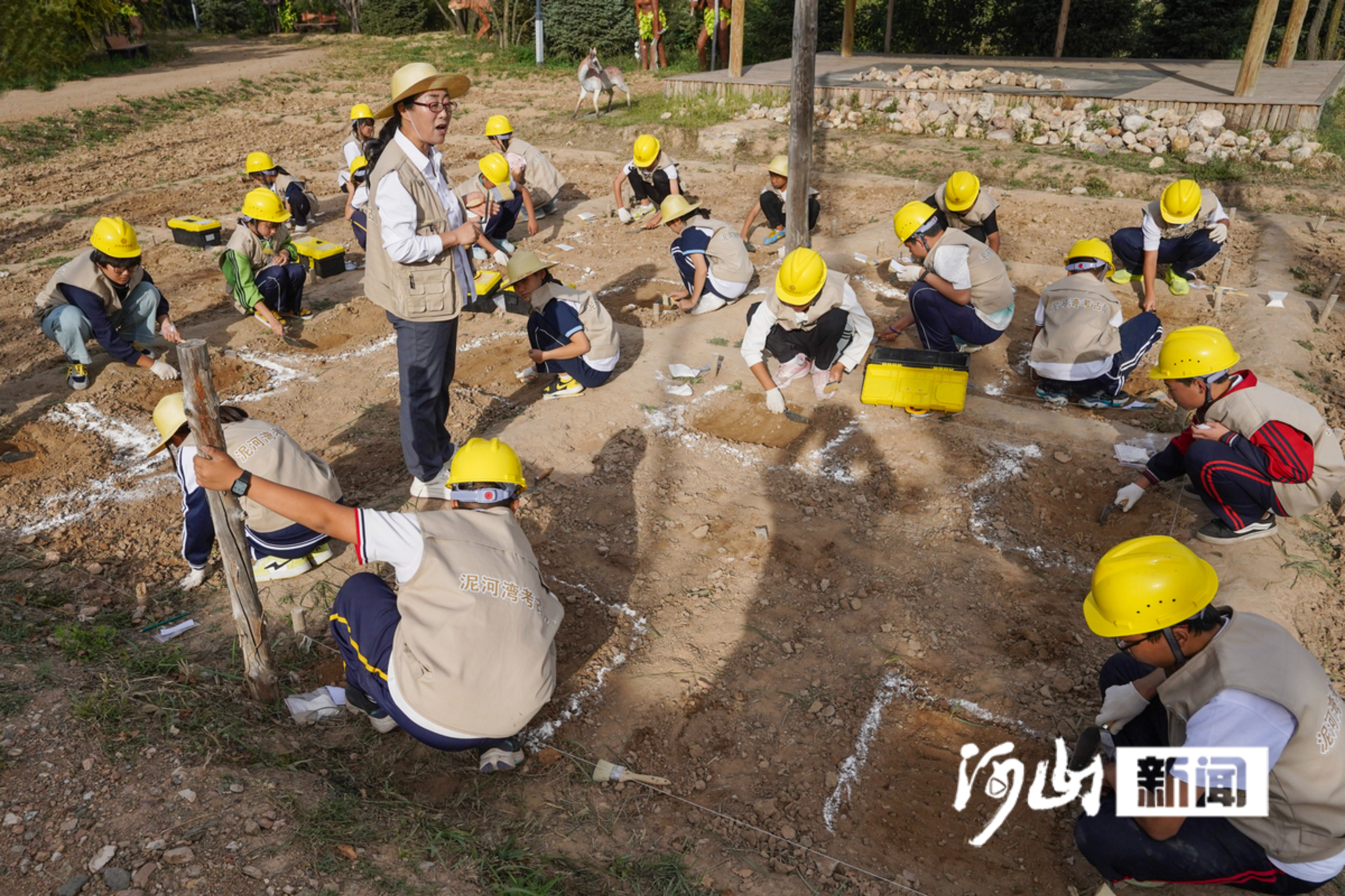 前不久,在阳原泥河湾人类起源研学旅游基地的野外研学区,来自阳原三中的学生们手执平头铲、棕毛刷,小心翼翼地挖掘着埋藏在泥土下的“文物”。“老师,我挖到一块!”初一学生韩雨嘉眼里闪着光,兴奋地跑向老师,手里的毛刷轻拂黄土,一块粗粝的石器轮廓渐显。在这里,百万年的时光,在学生们专注的指尖下,变得可触、可感、可对话。