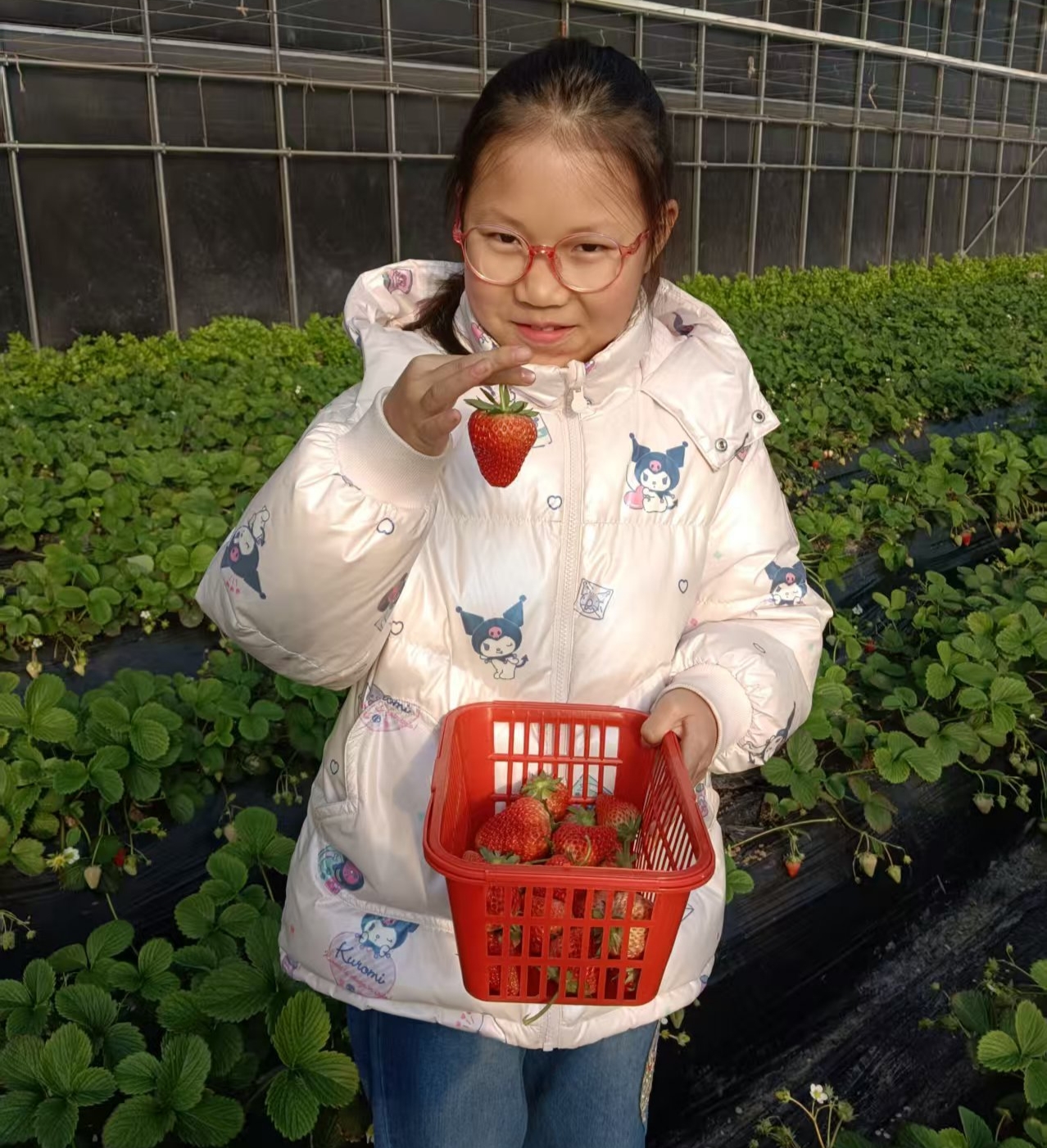 大棚深处,来自桃城区的周丽颖正陪着孩子挑选草莓。孩子兴奋地在垄台间穿梭,清澈的眼眸紧紧锁定那些红得发亮的果实,一手轻轻扶住藤蔓,一手捏住草莓果柄轻轻摘下,饱满的果实便落入掌心,动作虽略显笨拙,却格外认真。“第一次带孩子来摘草莓,看他玩得这么开心,我也高兴。这里草莓无农药,摘下来就能吃,口感特别好,既让孩子体验了农耕乐趣,又能吃到健康的水果。”周丽颖笑看着孩子忙碌的身影,脸上满是温柔的笑意。