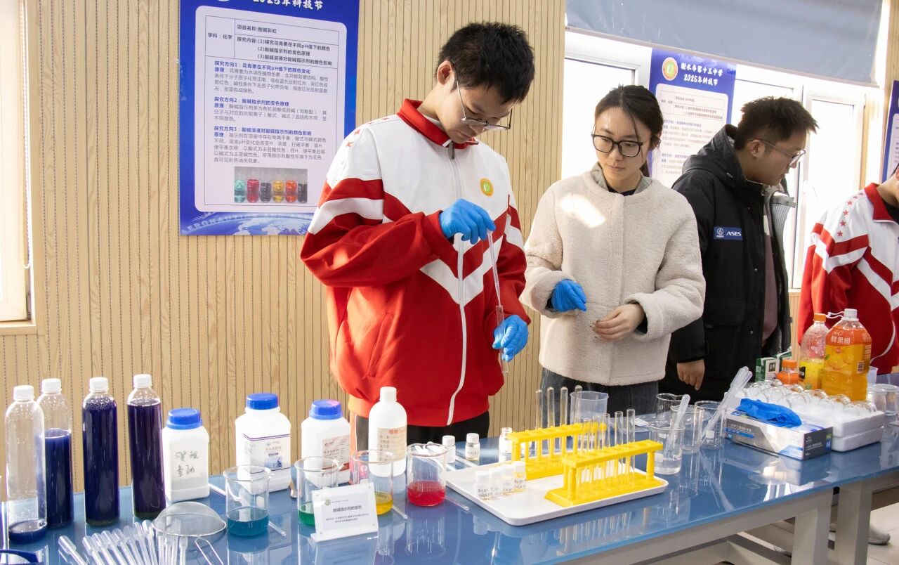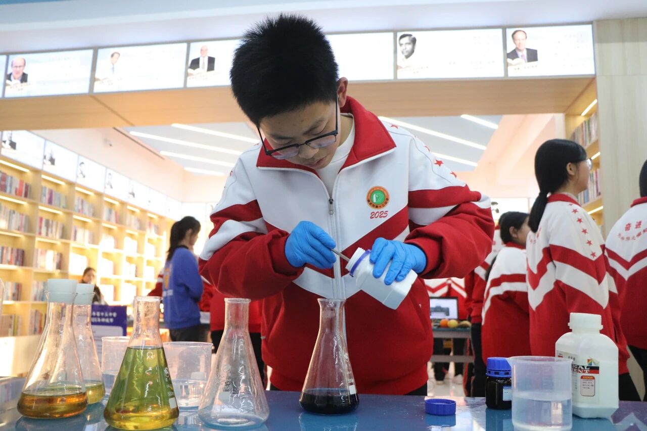 化学展区同样奇妙纷呈。盐水驱动小车前行,高锰酸钾变幻色彩,“水中花园”静静生长,“化学红绿灯”则通过化学反应实现颜色的交替变化,每一次变色都引来同学们的阵阵惊呼。同学们积极参与实验操作,在动手实践中探索化学原理,感受化学学科的独特魅力。