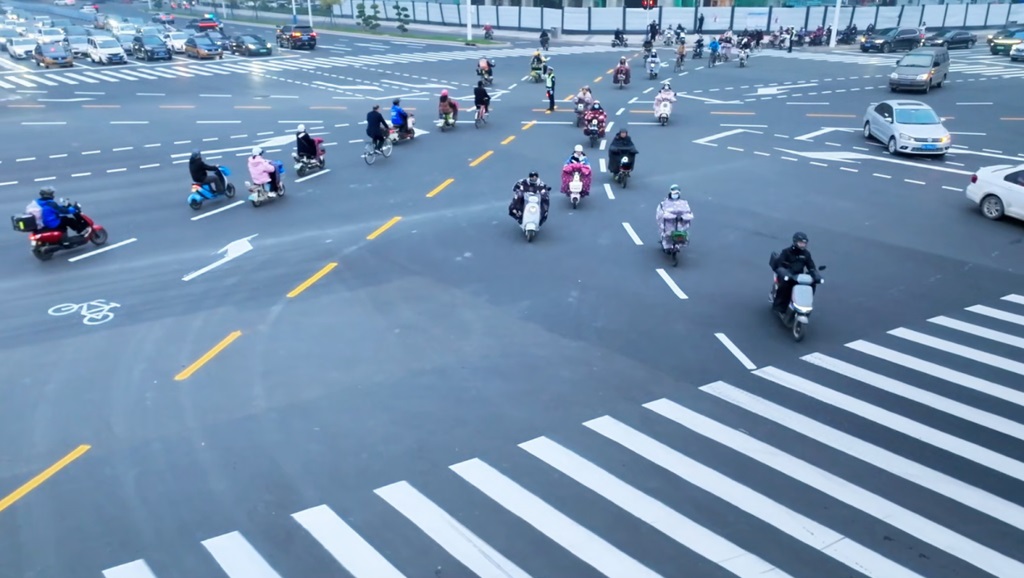 此次整治行动覆盖全天全时段,重点针对四类高频、高危交通违法行为:骑行电动自行车、电动摩托车(二轮、三轮)未按规定佩戴安全头盔;闯红灯、逆行、越线停车、不按规定车道行驶、乱停乱放等影响通行秩序的行为;驾驶改装、拼装电动车辆等存在安全隐患的严重违法行为;无牌上路行驶、过渡期白牌电动自行车违规上路行驶的情况。