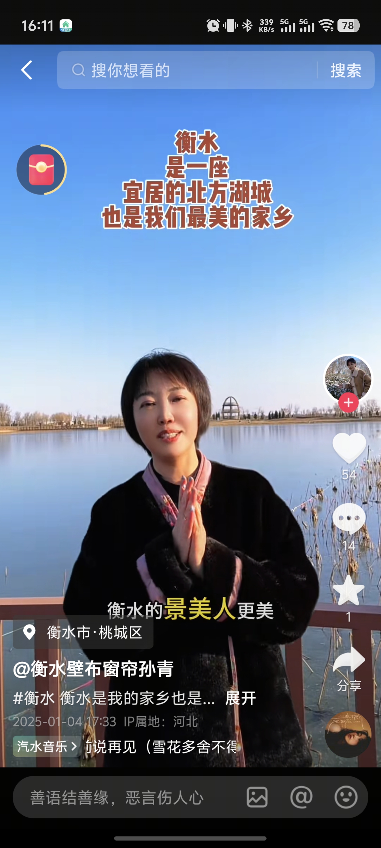 生意稳定后,孙青不忘回馈家乡。2025年,她被聘为“2025大美衡水湖文旅推荐官”,为了定格家乡的灵秀与壮美,她特意购置了专业拍摄设备,寒冬腊月里,她顶风冒雪地扛着相机往衡水湖边跑。店里生意再忙,她也会在关店后的傍晚,前往衡水湖邂逅暮色沉沉的芦苇荡,捕捉衡水湖不为人知的惊艳瞬间。除了宣传家乡,孙青还积极参与公益活动,为环卫工人、困境儿童群体捐赠物资,用自己的行动传递着温暖与爱心。