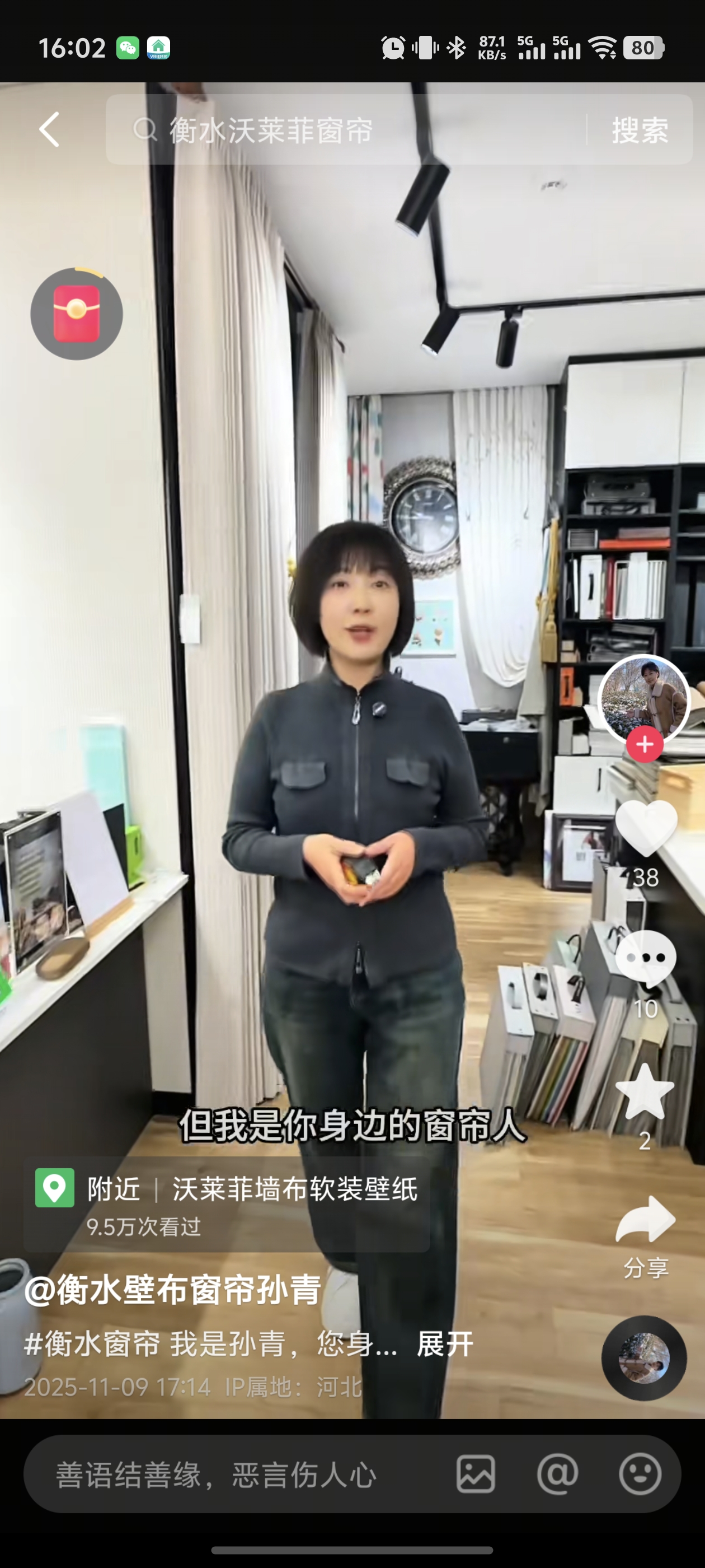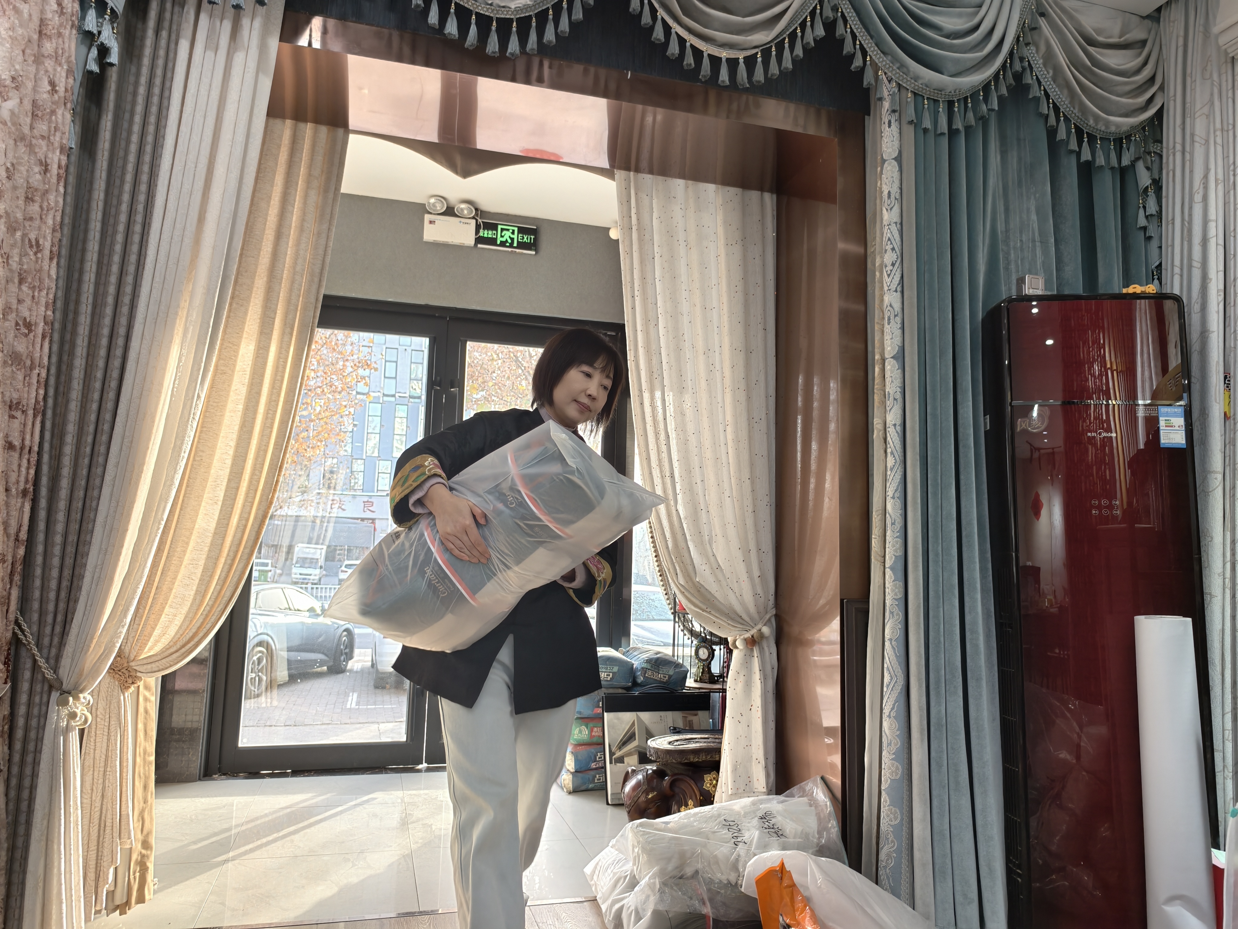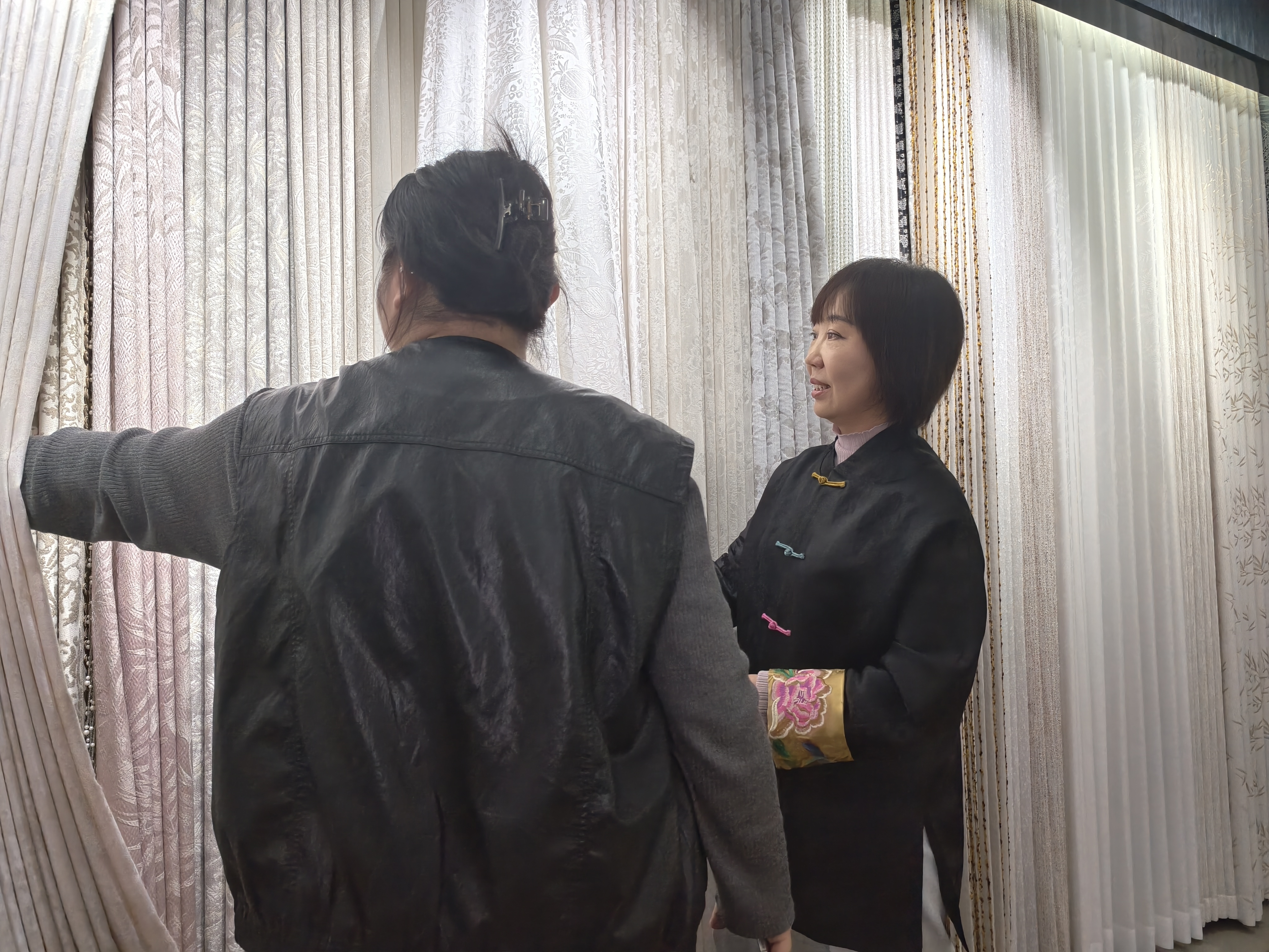 1月15日记者来到这家店,店内装修温馨雅致,壁纸与窗帘的款式多样,色彩斑斓,吸引着顾客的目光。孙青熟练地穿梭在店里,用她那热情且专业的态度为顾客提供着建议。从最初的艰难起步,到如今的稳步发展,孙青的创业之路充满了挑战与不易,但她从未放弃,始终坚守着自己的梦想。