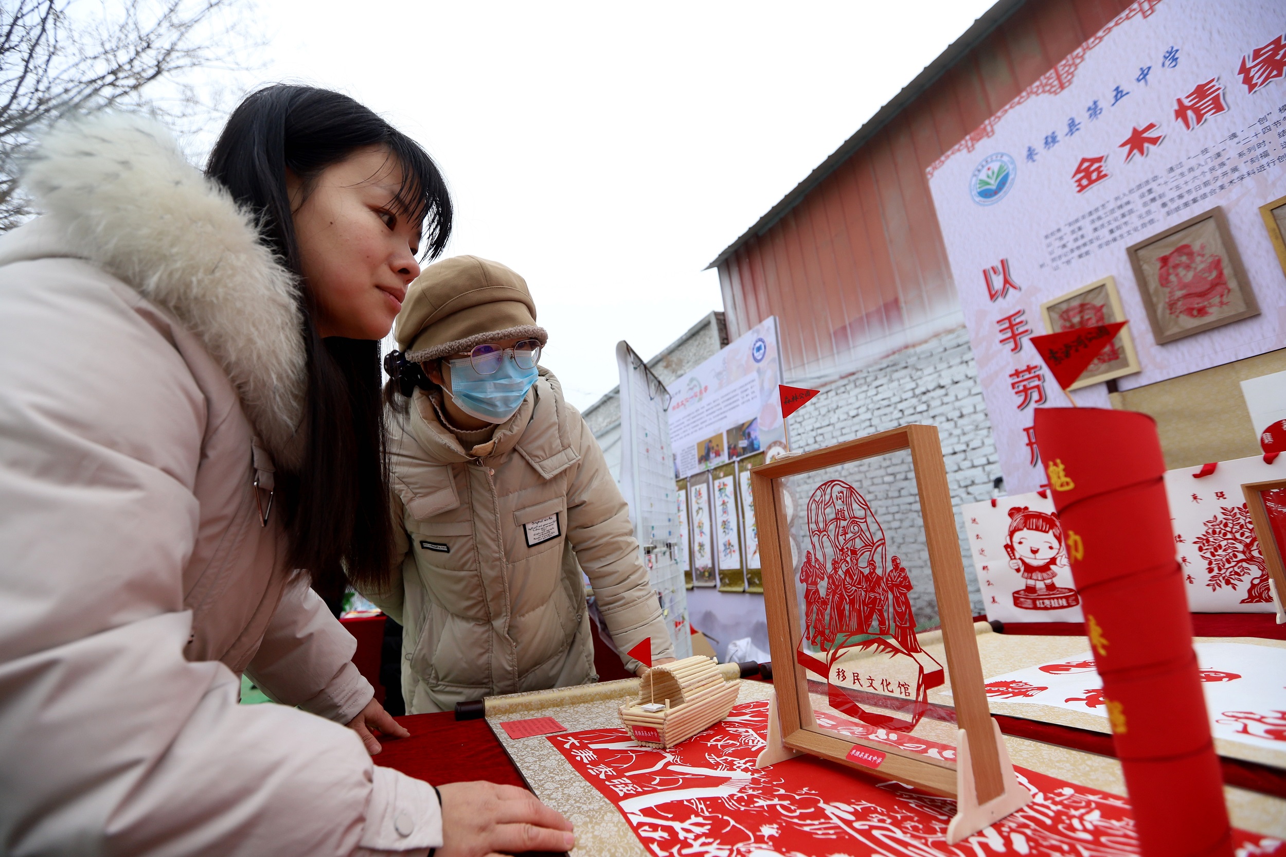 “快过年了,给大家送‘福’来喽!”来自县文联的书法家们挥毫泼墨,给村民们送上一幅幅寓意吉祥的春联、一个个饱满圆润的“福”字。墨香混着年味扑面而来,村民们捧着心仪的春联笑得合不拢嘴。10个文创摊位上,剪纸的精巧、扎染的雅致、花鸟字的多姿令人目不暇接,6个特色农副产品摊位更是香气四溢,马屯烤鸭蛋、新屯小米、恩察熏鸡等特产琳琅满目,村民们边品尝边选购,热闹非凡。