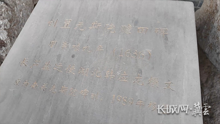 《创置先斯院赡田碑记》是明代碑刻。长城网·冀云客户端记者 崔上 摄