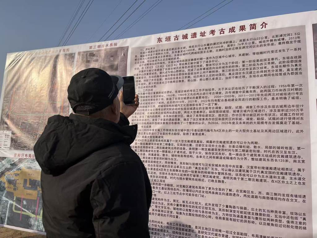 村民拍下东垣古城遗址考古成果。