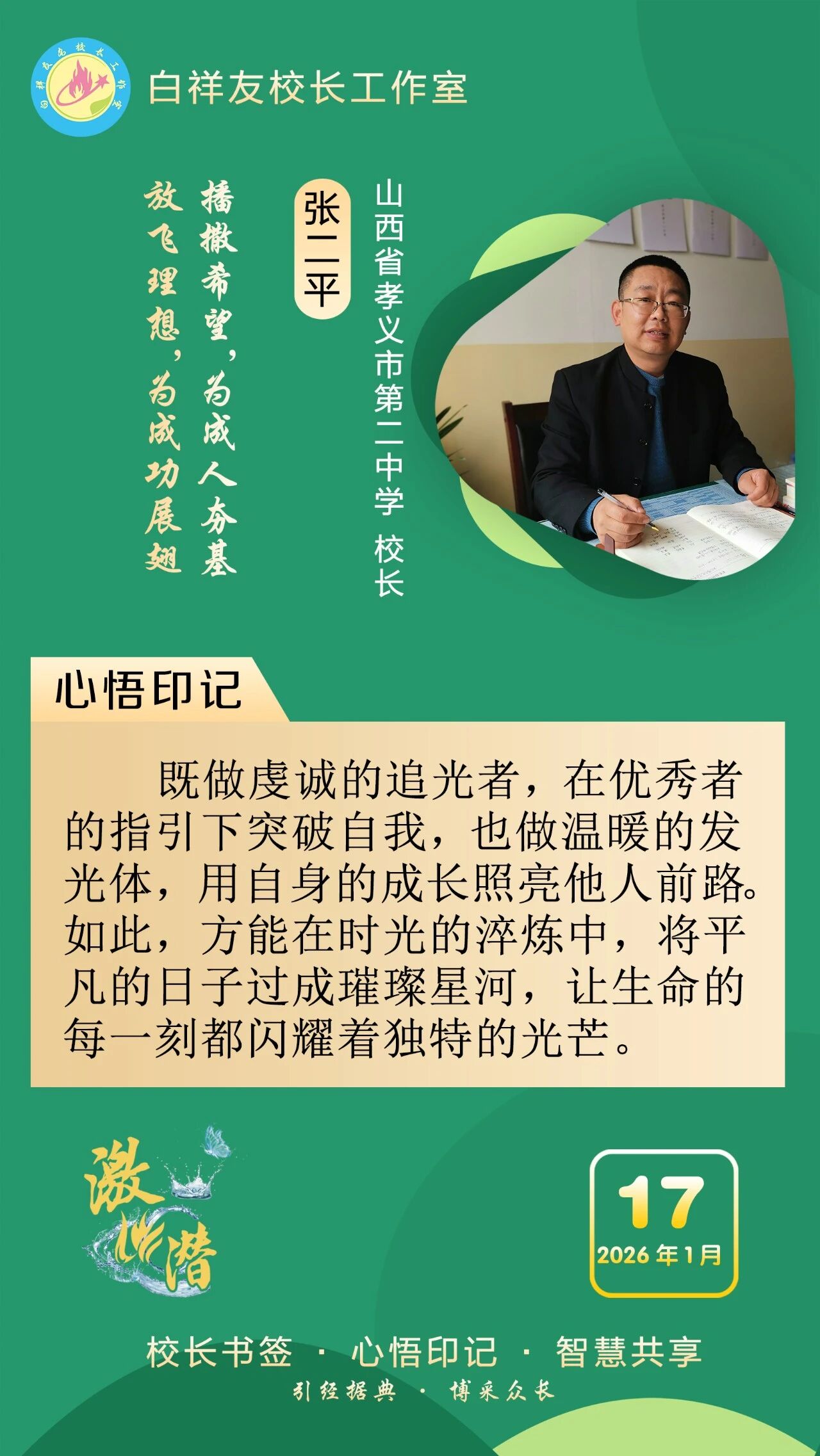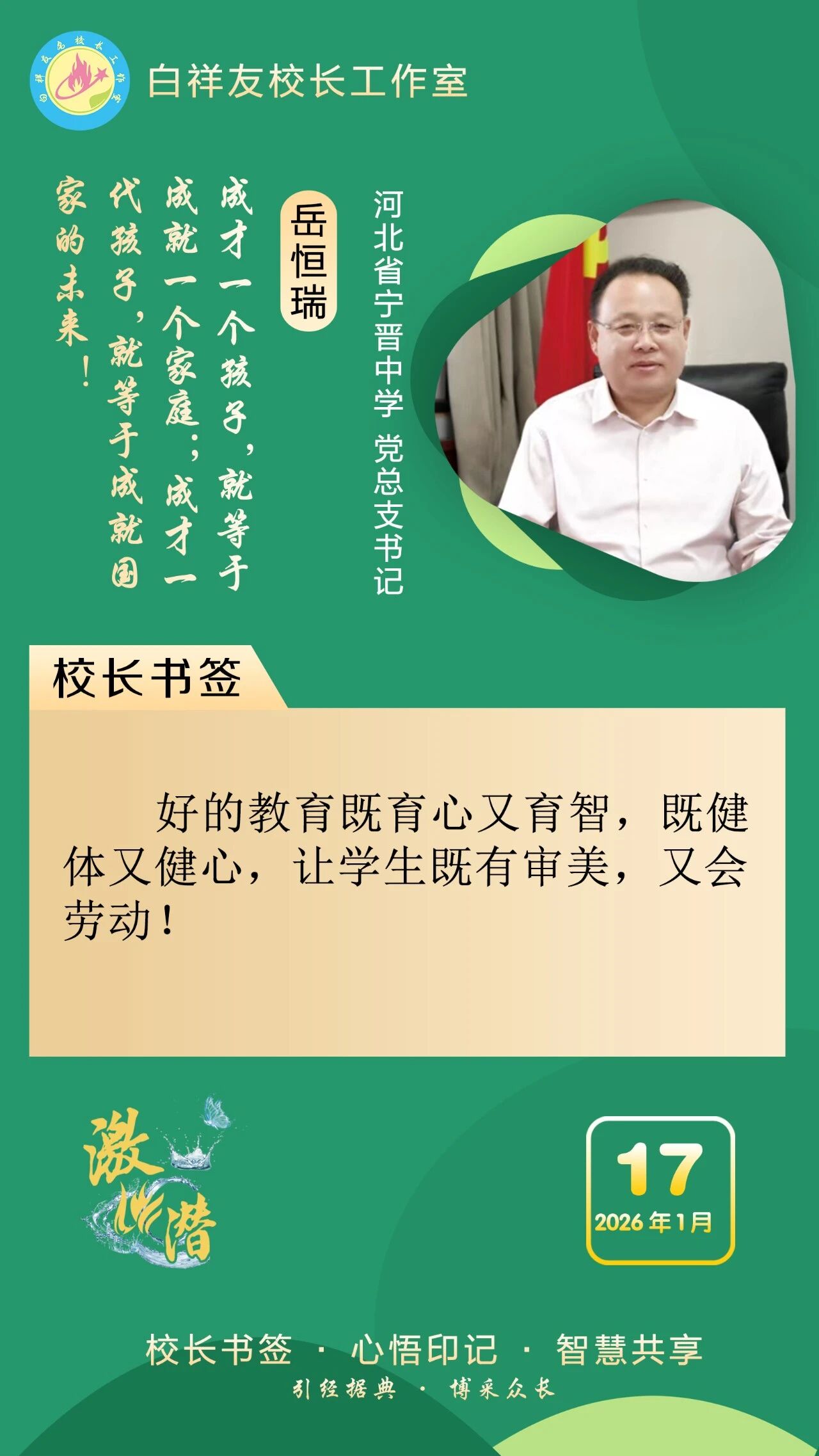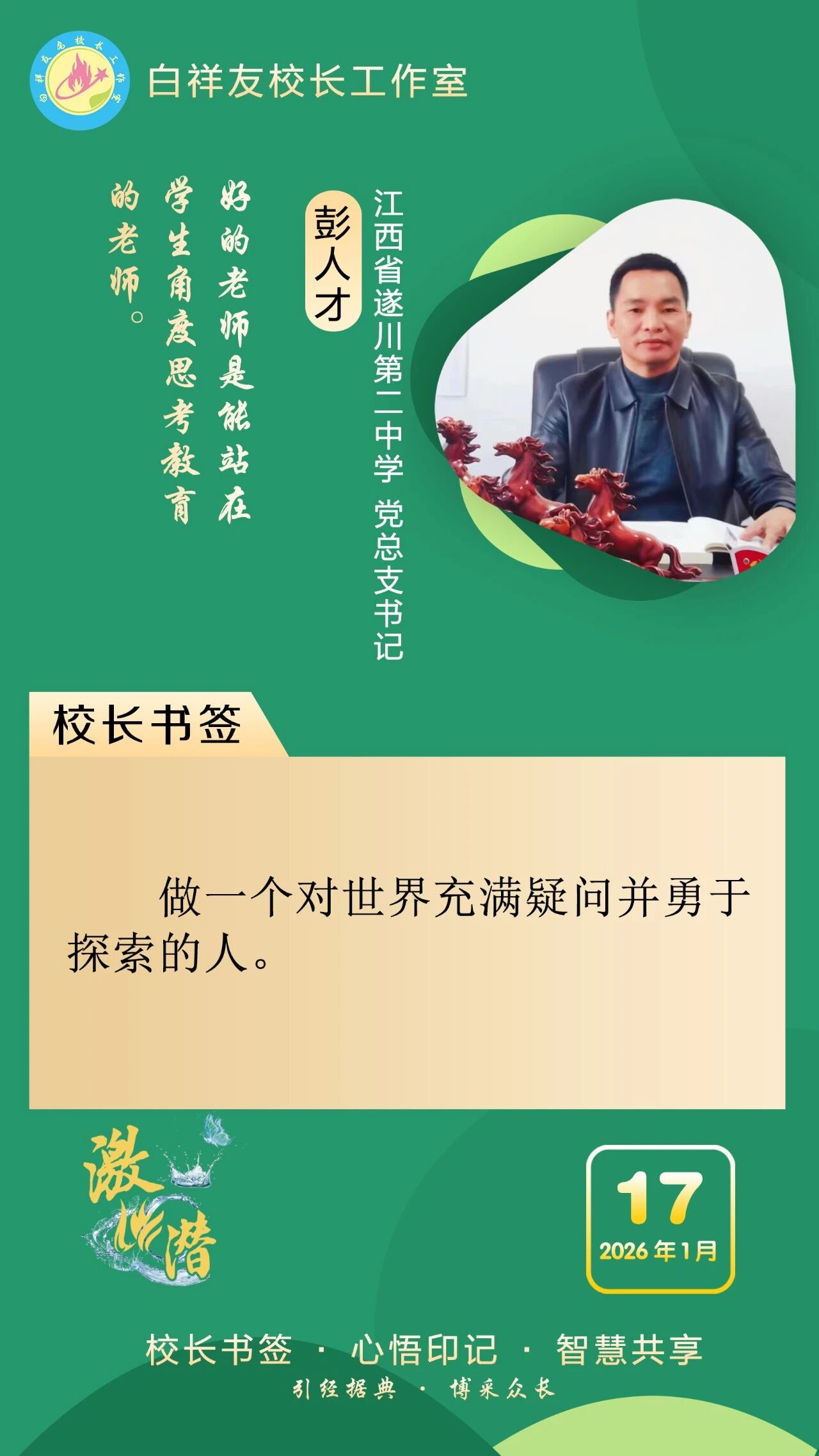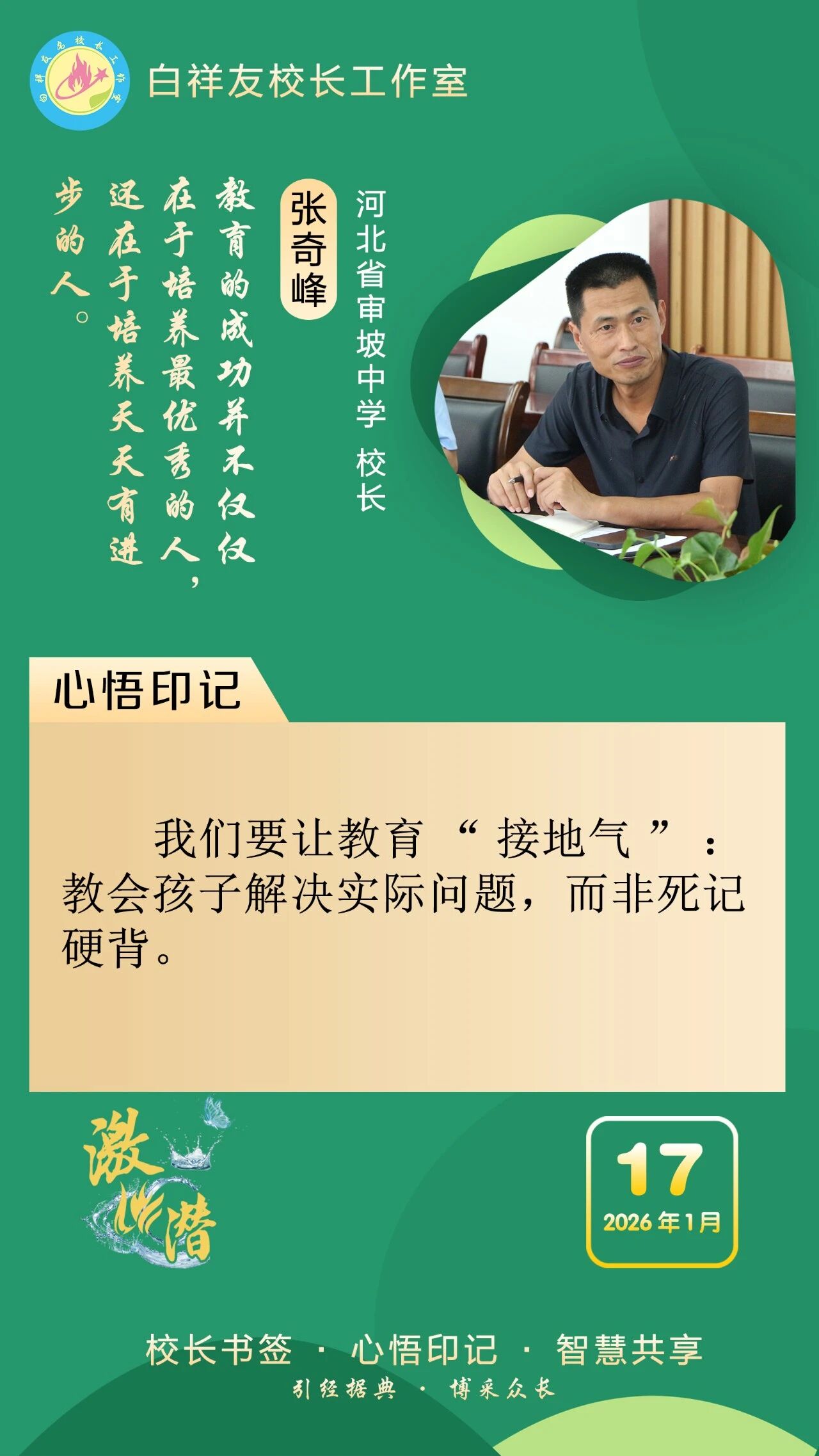 “白祥友校长工作室”成立于2019年4月,是教育部“国培计划”中小学名校长领航工程、河北省首批名校长工作室,目前省内外成员校59所。工作室坚持“资源共享、智慧共融、互助共赢”理念,已成为思想碰撞的交流场,资源共享的品牌站,成果展示的辐射源。 点赞 +1 微博 微信 我要评论 发布 相关推荐 白祥友校长工作室成员新疆实验中学冯永庄校长一行来衡水十三中参观交流 教育大观 03-23 衡水市名校长大讲堂在衡水十三中举办 教育部中小学校长培训办公室于维涛主任作专场报告 教育大观 01-19 白祥友校长工作室成员带队参观衡水十三中 教育大观 2024-05-22 “白祥友校长工作室”成员校石家庄十五中百余教师来衡水十三中参观 教育大观 2024-04-01 热门 一天 三天 一周 1 衡水“中国航天 衡水懂你”航天系列展览暨“万人共绘航天梦”活动启幕 2 衡水市灵活就业人员公积金开户人数突破5万人 3 严查欠薪隐患 筑牢维权防线 衡水桃城区全力守护农民工“钱袋子” 4 衡水枣强县张秀屯镇:“白+黑”攻坚“一喷三防” 筑牢夏粮丰收屏障 5 书香飘万家 真情暖童心 饶阳县妇联开展世界读书日主题阅读活动 6 衡水:社保宣传掀热潮 民生保障更贴心 7 衡水市第十二中学“智享书屋”启用 桃城区首座校园智慧阅读空间落地 8 暖“新”更暖心! 武强县委社会工作部为外卖骑手送上免费健康体检 9 冀州区开展“小手拉大手·文明齐步走”文明实践活动 10 雄安新区依托智慧城市提升现代化治理能力丨智慧城市有颗“超级大脑” 1 【四中全会精神在基层】“种苗工厂”里的现代化答卷 ——探访冀州区“育繁推一体化”种苗数智工厂 2 快来报名,全国青少年国防素养大赛(河北综合赛区)选拔赛来了 3 河北衡水:中国航天 衡水懂你——衡水市航天系列展览启幕 4 让“最柔软群体”享受“最优质照护”—— 衡水市故城县普惠托育服务实现从“有”向“优” 5 赶大集、看大戏!衡水市春季“村晚”走进阜城县霞口镇刘老人村 6 四金、四银、七铜 衡水小将闪耀省运动会冬季项目 创历史最佳战绩 7 衡水市开展第57个“世界地球日”垃圾分类主题宣传活动 8 守好民生“转运线” 做好群众“贴心人” —衡水优护送打造规范专业非急救转运标杆 9 共青团桃城区委开展世界读书日主题实践活动 10 “奔跑吧·少年”2026年衡水市青少年田径比赛暨河北省青少年田径锦标赛达标赛开赛 1 衡水市冀州区开展“阅见书香之美 共筑阅读之城”春季书香节主题活动 2 衡水文旅“春意浓”:多元产品激活春日市场 3 河北故城:启动“护苗·绿书签”行动 书香校园里播撒“绿色”种子 4 4起整治形式主义为基层减负典型问题,公开通报! 5 【四中全会精神在基层】“种苗工厂”里的现代化答卷 ——探访冀州区“育繁推一体化”种苗数智工厂 6 【新思想引领新征程】推进数字中国建设 打造高质量发展新引擎 7 衡水市2026年新时代乡村阅读启动仪式在武邑举办 书香赋能乡村振兴 8 快来报名,全国青少年国防素养大赛(河北综合赛区)选拔赛来了 9 阜城县6万余亩西瓜喜获丰收 科技赋能助农增收 10 3月份衡水城市CPI同比上涨2.0% 广告 广告 广告 24小时 1 学习手记|守护好这颗蓝色星球 2 微视频|习近平的读书之道 3 习近平向伊拉克新任总统阿米迪致贺电 4 1751家企业通过集群注册登记方式落地雄安 5 雄安新区启动首届全民阅读活动周 目前已建成数十个家门口图书室 6 我的雄安日志|疏解加速度,雄安有温度 7 雄安新区依托智慧城市提升现代化治理能力丨智慧城市有颗“超级大脑” 8 深入推进雄安新区高质量建设和发展,承接疏解 积厚成势 9 积极主动对接京津服务京津,协同造车 “链”动三地 10 协同十二载 京畿向未来丨京津冀深度协同 共绘两翼发展新图景