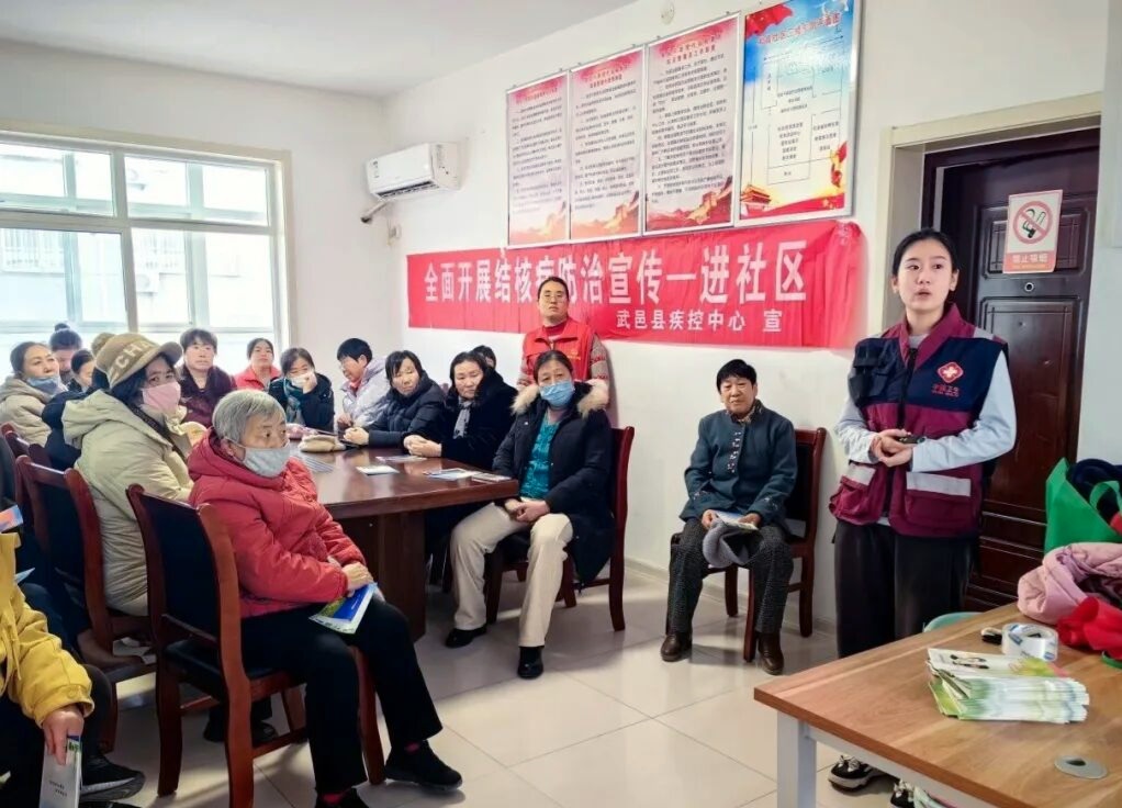 冬季室内通风减少,结核病传播风险增加。工作人员解读了结核病常见症状,如持续咳嗽咳痰2周以上等,告知出现症状要及时就医筛查。倡导大家保持良好卫生习惯,并分享预防妙招,如保持室内通风、规律作息等,帮助居民降低冬日感染风险。