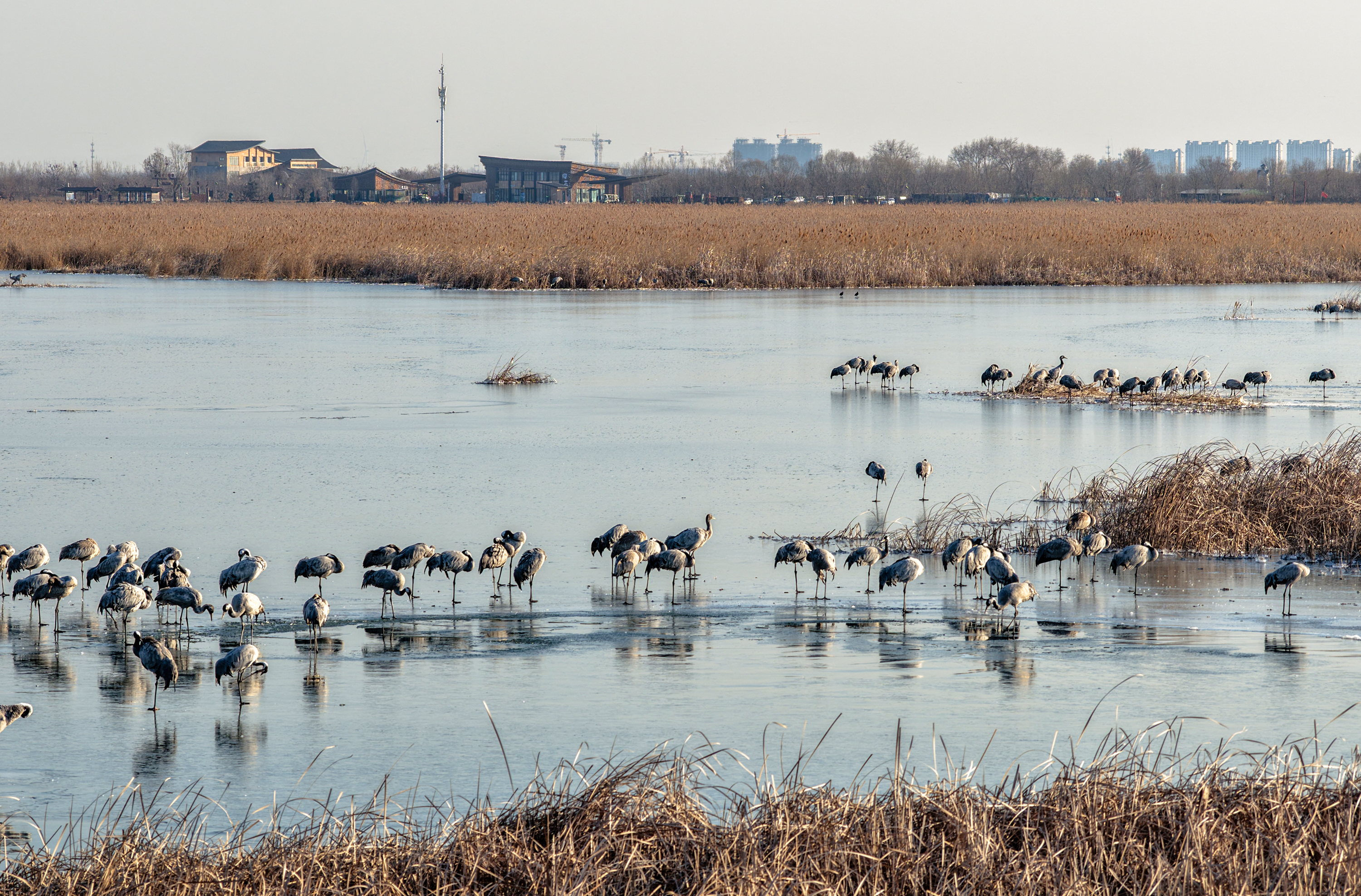 作为华北重要的候鸟越冬地,衡水湖近年来持续推进生态修复,水生生物丰富度显著提升,为灰鹤、白枕鹤等珍稀鸟类提供了充足的能量补给。据监测,今冬在此栖息的鹤类种群数量较往年稳中有升。