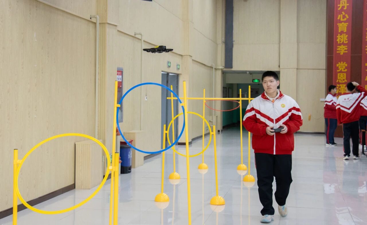 科技的魅力在无人机社团变得可触可感,同学们在障碍赛道中练习精准穿越,在竞速比拼中挑战反应极限。手、眼、脑高度协同,在三维空间里实现“人机一体”的默契。