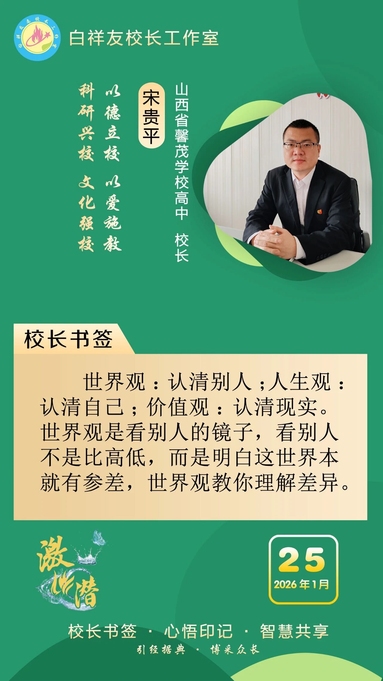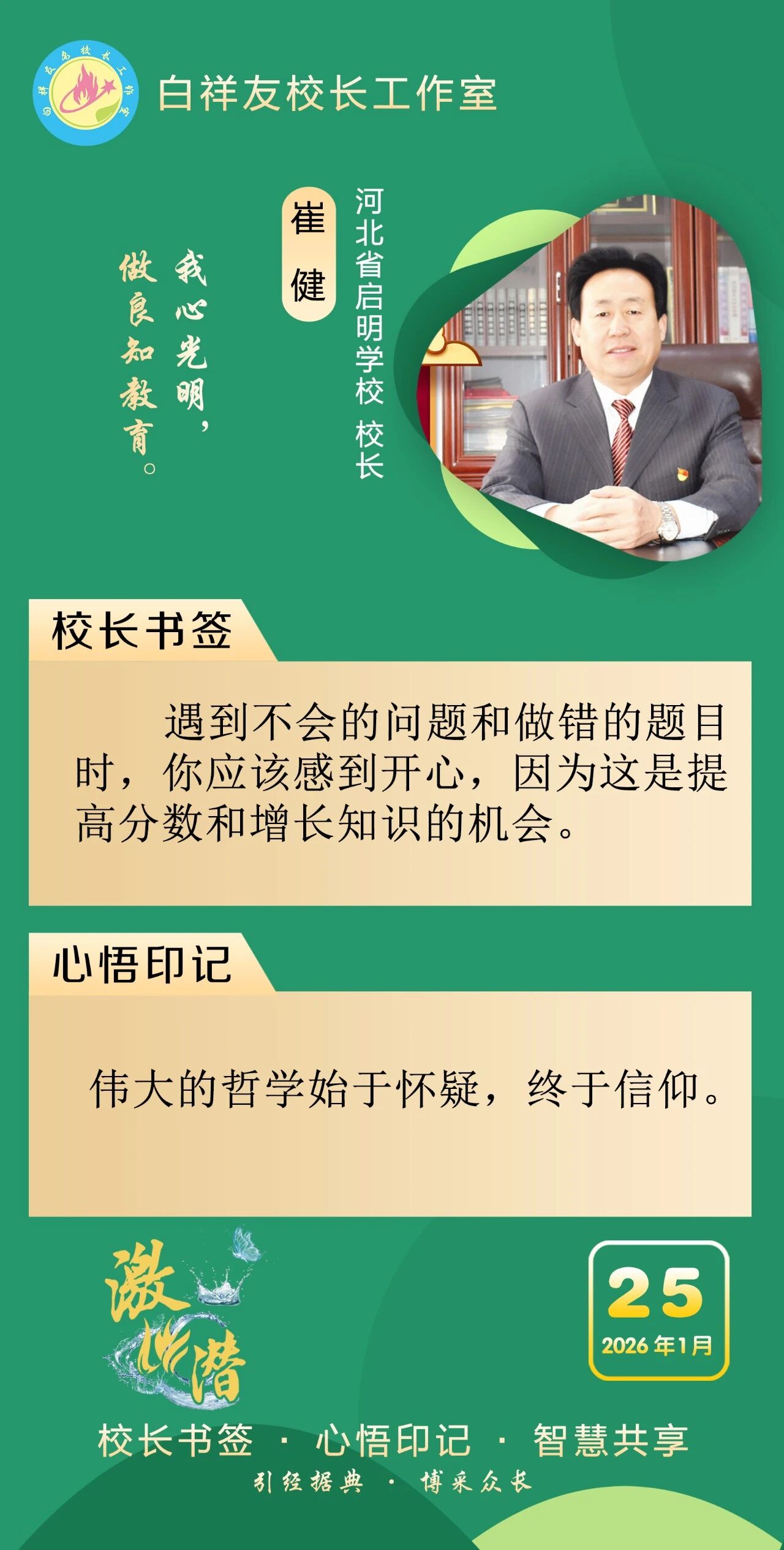 “白祥友校长工作室”成立于2019年4月,是教育部“国培计划”中小学名校长领航工程、河北省首批名校长工作室,目前省内外成员校59所。工作室坚持“资源共享、智慧共融、互助共赢”理念,已成为思想碰撞的交流场,资源共享的品牌站,成果展示的辐射源。 点赞 +1 微博 微信 我要评论 发布 相关推荐 衡水市名校长大讲堂在衡水十三中举办 教育部中小学校长培训办公室于维涛主任作专场报告 教育大观 01-19 白祥友校长工作室成员带队参观衡水十三中 教育大观 2024-05-22 “白祥友校长工作室”成员校石家庄十五中百余教师来衡水十三中参观 教育大观 2024-04-01 热门 一天 三天 一周 1 壹视界·任平文章解读|从国内国际两个大局,读懂“十五五”战略谋划 2 河北饶阳:骨雕在创新传承中走向世界的非遗技艺 3 春运期间衡水车务段加开45列临客 4 河北饶阳:寒冬里的“常青苗” 5 《习近平与一线职工朋友们》出版发行 6 点骨成“金”——饶阳非遗骨雕技艺将废弃牛骨化身为艺术珍品 7 衡水冀州:航能新材 赋能多产业高质量发展 8 冰雪春天丨总书记关切的“冷资源”带动“热经济” 9 【四中全会精神在基层】村庄焕新颜 和美润民心——武邑县吴桥头村着力改善人居环境见闻 10 捷报频传!武邑县职教中心学子在省技能大赛中揽获17项荣誉,饲料营养与检测团队晋级世校赛 1 让每一份希望都稳稳落地——2025年衡水市残疾人事业高质量发展综述 2 织密立体交通网 畅通发展快车道 衡水六大攻坚行动完善现代化综合交通运输体系 3 2025年衡水市经济运行稳中向好 4 “桑梓情 心永衡”2026年衡水学子回归计划主题招聘活动启动 5 聚“百家米” 汇“邻里情” 衡水桃城区沁园社区开展“童心集福米”邻里温情活动 6 【“十五五”开局看衡水】乘风逐梦向云端——我市低空经济聚链成群再“高飞” 7 衡水桃城区:智能装备产销两旺 工人加紧生产保订单 8 武邑县武罗社区:腊八粥香飘社区 浓浓温情暖人心 9 海报系列||早安衡水 10 央媒省媒关注衡水体育文化事业蓬勃发展 1 衡水湖:越冬鹤群踏冰栖息 大寒时节绘就生态画卷 2 衡水3园区成功入选河北省首批零碳园区 3 【新闻发布】衡水“动真碰硬”规范涉企执法 4 一碗粥一瓣蒜 衡水萌娃“趣”寻腊八味 5 【四中全会精神在基层】冬日“红玛瑙” 增收“金果子” ——枣强县和光农业园区草莓种植见闻 6 百姓看联播 | 雄安有家24小时不打烊的“车管所” 7 【四中全会精神在基层】 科技赋能沃野 温室孕育生机 ——武强县数字农业产业园绘就现代农业新图景 8 -13℃下的被困大雁冰湖救援记 9 衡水市委市直工委组织党员干部集中收看《榜样10》 10 衡水早餐“微市场”:寒冬里的人间烟火 广告 广告 广告 24小时 1 【冀观察】手握万亿新增,河北如何出牌? 2 聚焦2026河北两会·政府工作报告解读丨回望“十四五”——中国式现代化在燕赵大地展现勃勃生机 3 展望“十五五”——加快建设经济强省、美丽河北 奋力谱写中国式现代化建设河北篇章 4 长城PPT丨2026年河北省政府工作报告要点 5 百姓看联播 | 满格信心,来自河北这份给力“成绩单” 6 创意微视频丨展图“十五五” 共绘河北新图景 7 两会快评丨跑出加速度 拼出新天地 8 创意视频 | 2025河北经济亮眼数据看过来 9 2026河北两会·聚焦丨河北省第十四届人民代表大会第四次会议开幕 10 2025河北经济数据解读|固定资产投资稳步增长 “压舱石”作用凸显