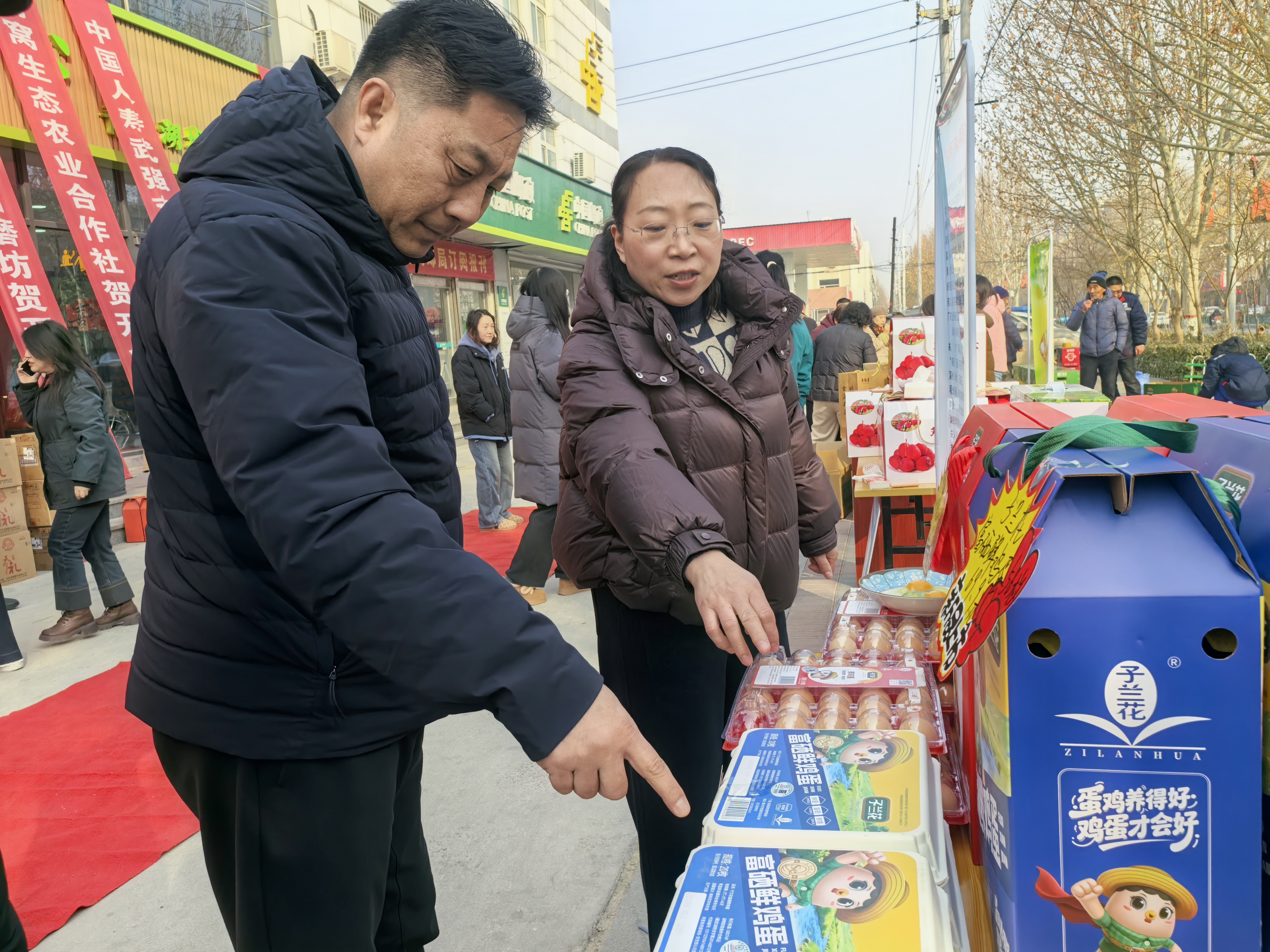 武强县信誉养殖专业合作社的销售负责人耿秀爽向顾客介绍着富硒鸡蛋:“我们的鸡蛋绝对没有药残,没有抗生素残留,每一批都有检测报告,品质值得放心。”说话间,这位北京返乡的顾客订购了六盒鸡蛋,成交了现场首笔订单。“在县农产品展销中心销售的品牌,质量肯定信得过,吃着踏实。”顾客李先生说。