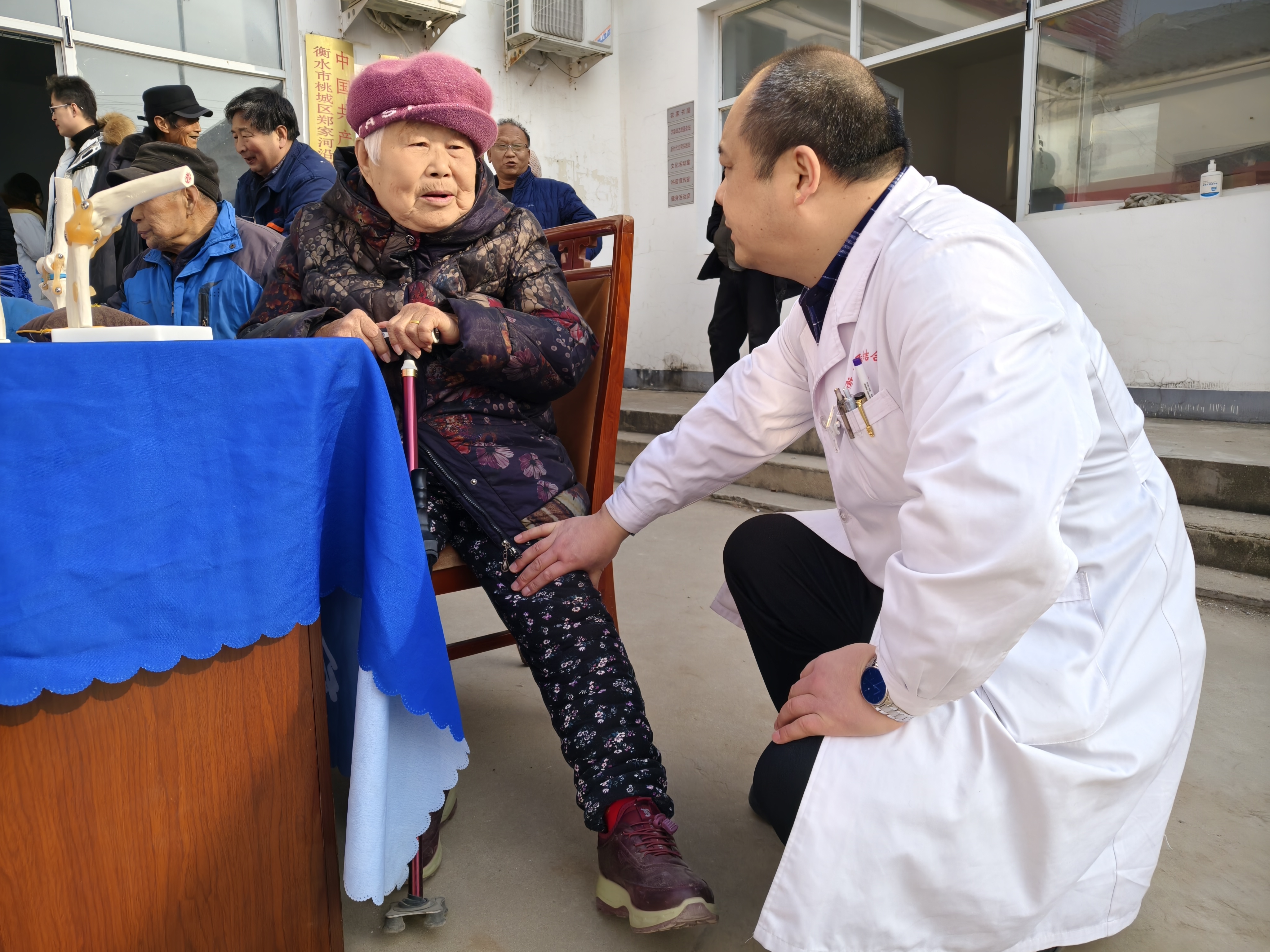 医务志愿者为村民进行骨科健康检查。 董政柯 摄