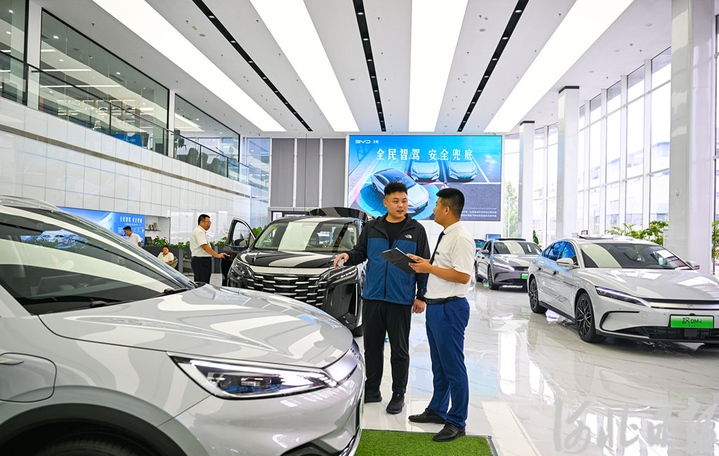 石家庄市民在裕华汽车园一家4S店选购新能源汽车。河北日报资料片