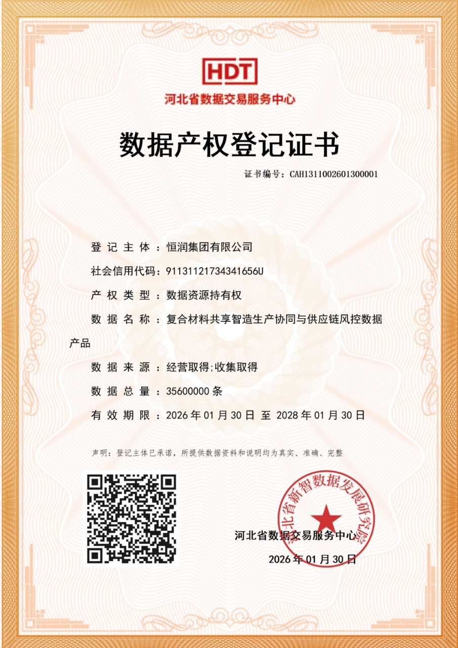 枣强复合材料产业龙头企业恒润公司打造的“复合材料共享智造生产协同与供应链风控数据产品”,则专注于复合材料智造领域的生产协同、能效评价与风险画像。其核心功能在于破解产业链中信息碎片化、生产过程不可视、风控缺乏标准等痛点,通过融合“制造共享”中的设备实时运行数据、“集采共享”中的贸易流水以及企业全息画像,推动产业从“经验管理”向“数据驱动”转变,既为金融服务提供贷前、贷中风控支持,也为工厂精准排产提供科学依据,助力复合材料产业实现高质量发展。
