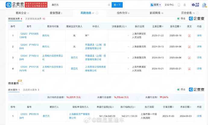 近期,演员张雨绮陷入舆论风波,引发全网热议。目前,张雨绮方面暂未对争议作出回应,且全程冷处理,随后其多个美妆、护肤等商务合作被取消、辽宁春晚相关节目也被取消。据企查查信息显示,近期,张雨绮与魏某某、义乌市麓艺电子商务商行(个体工商户)新增开庭信息,案由为肖像权纠纷,案件将于3月27日在上海市徐汇区人民法院开庭审理。此外,张雨绮名下关联9家公司,6家已注销,其中新沂张雨绮影视文化工作室、南京张雨绮影视文化工作室注册资本仅1万元、10万元。其前夫袁巴元名下关联11家企业,6家为吊注销状态,并因多起案件被限制高消费,终本案件显示袁巴元未履行金额1.4亿余元。