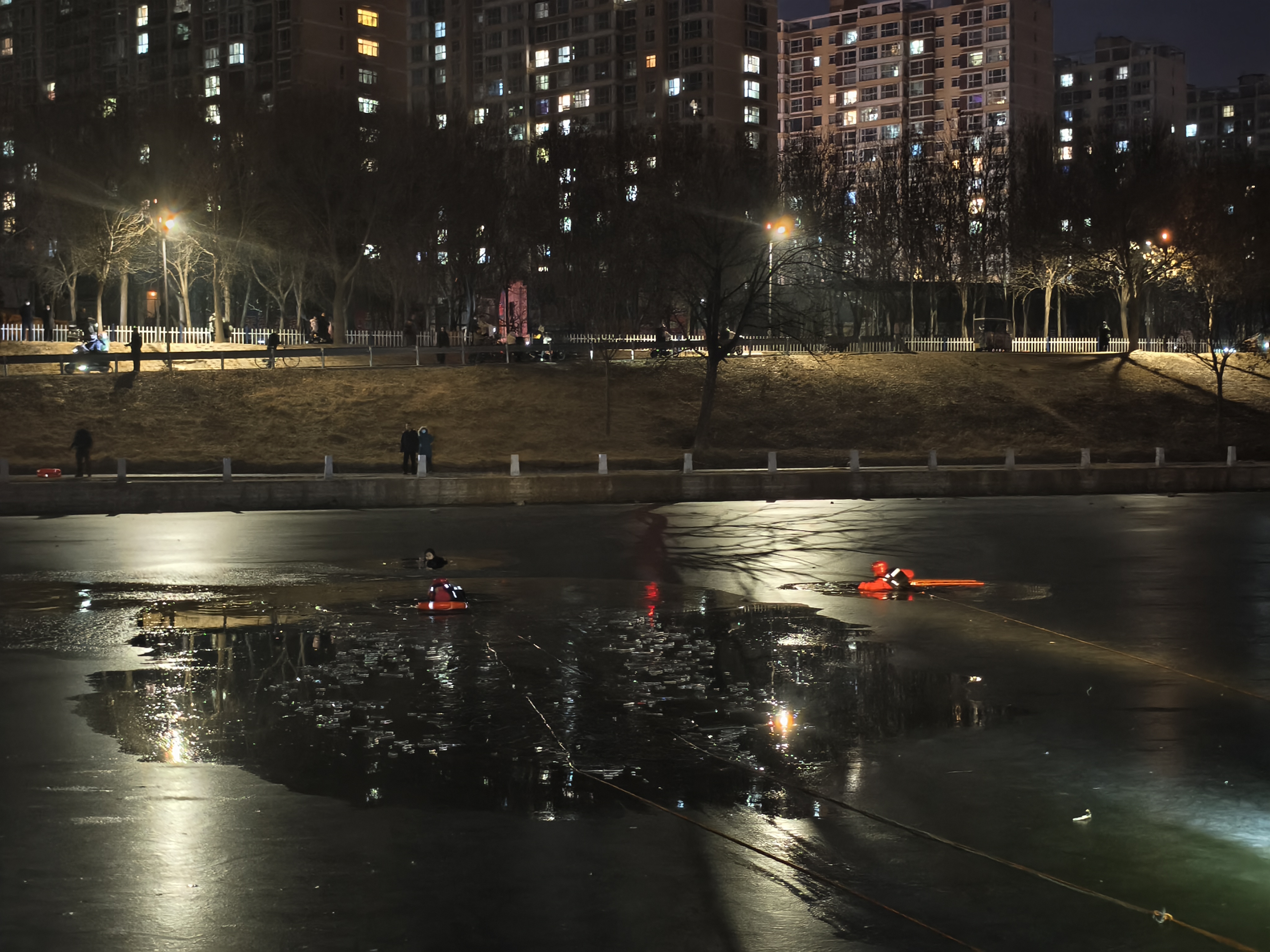 当天18时07分,衡水市消防救援支队接到报警称:衡水市区滏阳河人民桥河段一人掉入冰窟,急需救援。人民东路消防救援站立即出动1辆抢险救援消防车、1辆城市主战车、12名指战员赶赴现场实施救援。