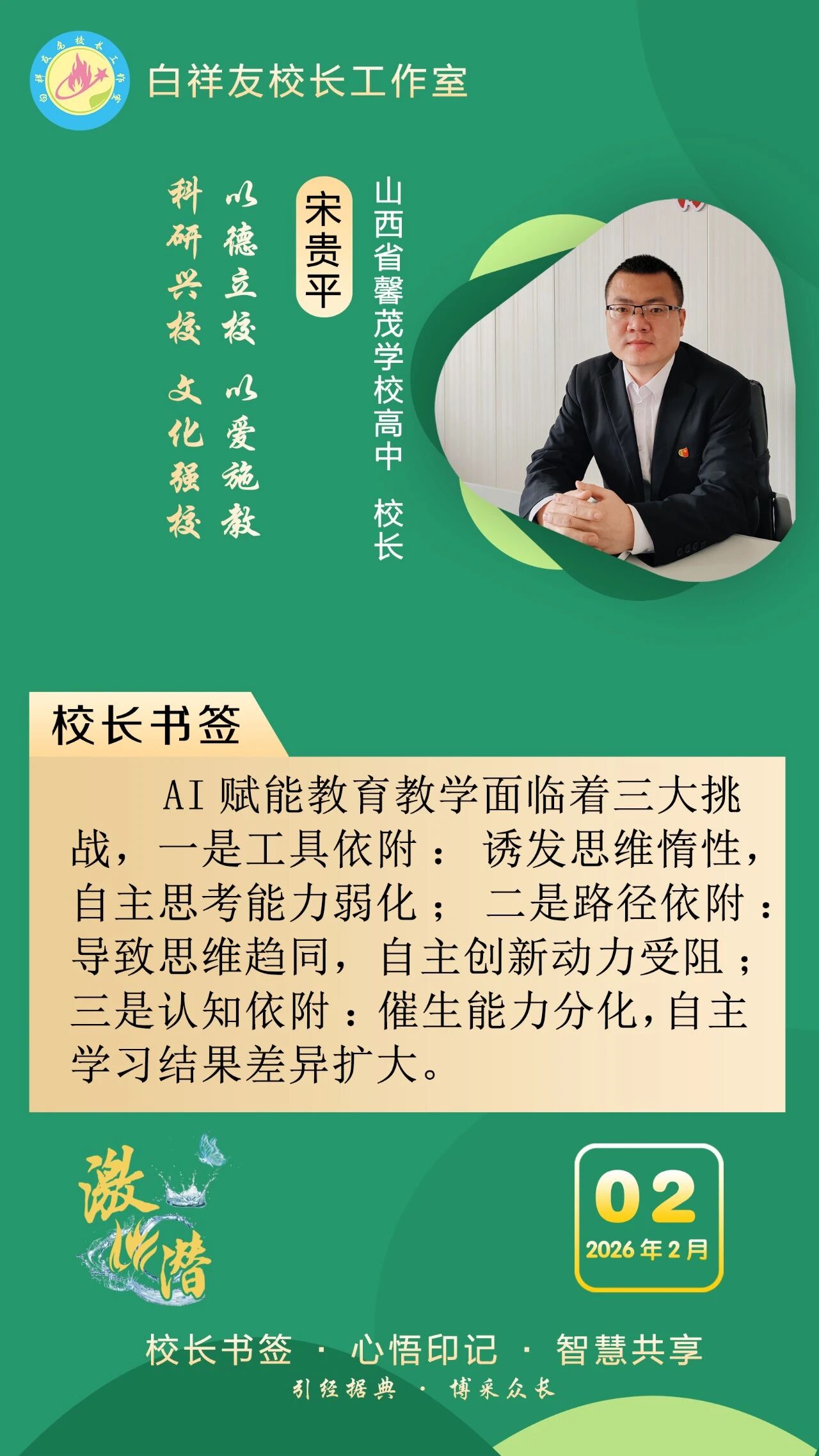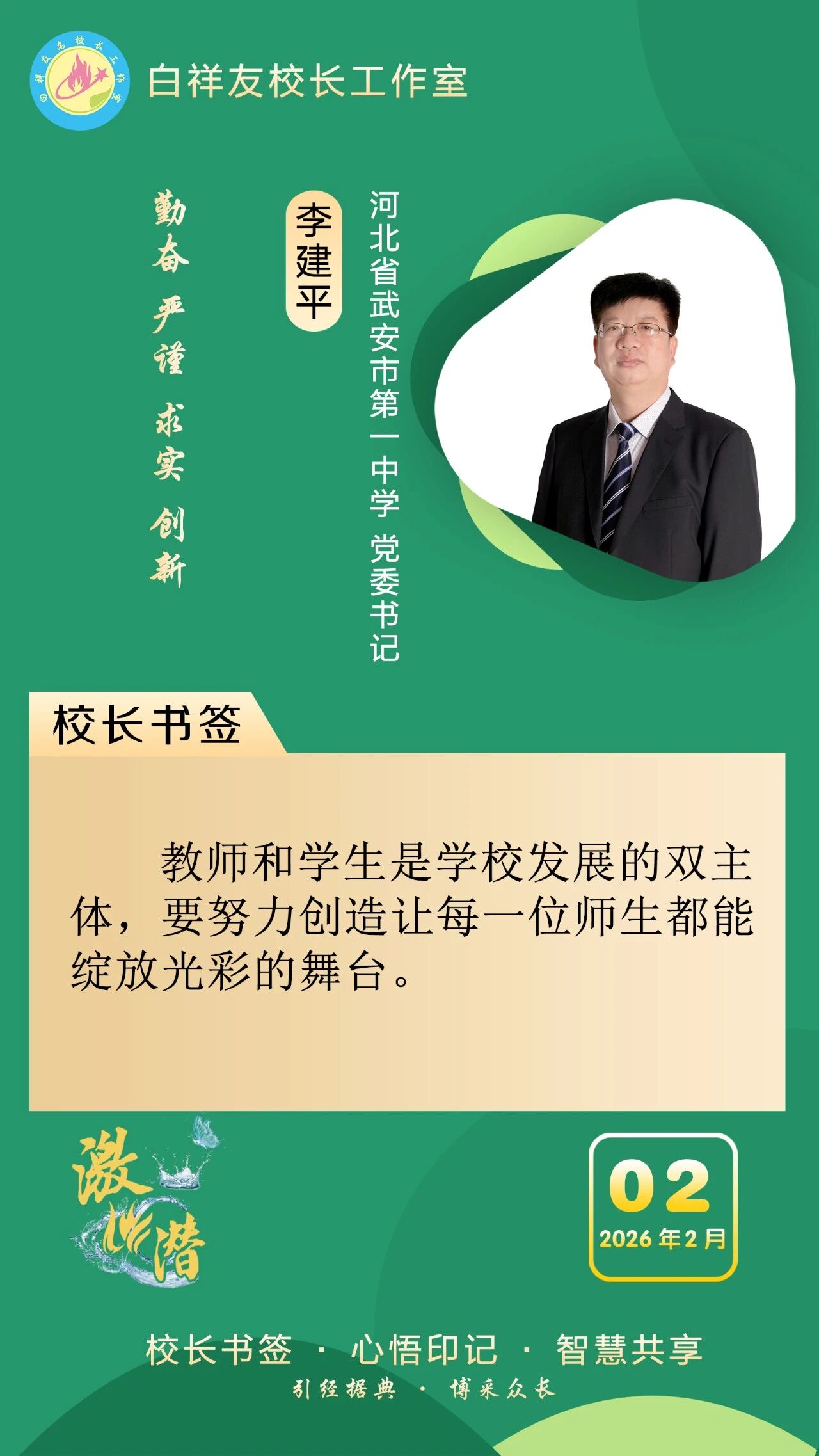 “白祥友校长工作室”成立于2019年4月,是教育部“国培计划”中小学名校长领航工程、河北省首批名校长工作室,目前省内外成员校59所。工作室坚持“资源共享、智慧共融、互助共赢”理念,已成为思想碰撞的交流场,资源共享的品牌站,成果展示的辐射源。 点赞 +1 微博 微信 我要评论 发布 相关推荐 衡水市名校长大讲堂在衡水十三中举办 教育部中小学校长培训办公室于维涛主任作专场报告 教育大观 01-19 白祥友校长工作室成员带队参观衡水十三中 教育大观 2024-05-22 “白祥友校长工作室”成员校石家庄十五中百余教师来衡水十三中参观 教育大观 2024-04-01 热门 一天 三天 一周 1 印度尼西亚姑娘远嫁阜城小伙 八年坚守绘就最美家风 2 衡水市:让养老成为看得见、摸得着的幸福实景 3 衡水市多源蓄水保春灌 4 【新春走基层】深州市辰时镇温家庄村的好日子 5 【新春走基层】笔墨映笑脸 戏韵连邻里——武邑文昌社区春节文艺演出活动见闻 6 新春走基层|衡水市社会福利院里的热闹与热泪 7 衡水市区1.4万余盏路灯“体检”迎新春 8 衡水市园林中心开展城市园林绿化卫生大扫除 洁净环境迎新春 9 回眸来时耕耘路 实干笃行谱新篇 ——衡水二中2025年办学成果岁末盘点 10 邯港高速衡水段开展春运危化品应急演练 1 把爱带回家 景县开展2026寒假儿童关爱服务活动 2 【新春走基层】 赶大集 办年货 品年味 衡水市冀州新发地年货大集火热开市 3 印度尼西亚姑娘远嫁阜城小伙 八年坚守绘就最美家风 4 衡水市马文化展览精彩亮相 市民沉浸式感受中华马文化 5 衡水市:让养老成为看得见、摸得着的幸福实景 6 【新春走基层】寻年味 叙乡情 促和谐 衡水市冀州社区新春活动温情满溢 7 策马扬鞭启新程 衡水市五院交出2025医疗民生答卷 8 下好“三盘棋” 引资18亿 阜城县霞口镇项目建设取得新突破 9 新闻多一点|隆福寺:老北京文化街区的古朴与创新 10 聚焦“刚刚好”的美 风光摄影师Henry为衡水摄影爱好者传艺 1 春节期间衡水推出近200项文旅活动 2 破局与生长 ——2025年十大亮点见证基础教育的衡中力量 3 衡水移动:织密通信“保障网” 守护万家“团圆年” 4 戏曲搭台传古韵 服务下乡暖民心 衡水市景县举办“戏曲过大年”文化惠民活动 5 衡水市首个市属高速公路党群服务驿站挂牌启用 6 全省首笔!工行冀州支行3000万元“购建贷”赋能棉纺产业智能化升级 7 烟火聚大集 年味满武邑 ——衡水市首届供销年货会暨武邑县2026年供销大集见闻 8 剪福字 贴窗花 武邑开展童心敬老活动传承美德 9 故城:大棚香椿抢“鲜”上市 10 桃城机场护航 河北竞速队勇夺2025无人机竞速联赛佳绩 广告 广告 广告 24小时 1 【新春走基层】沁园社区小年放榜记 2 理性购物 安全出游 衡水市发布春节假期消费提示 3 快检生鲜肉219批次 衡水市开展春节前生鲜肉品夜查行动 4 滨湖新区:便民利企多举措 服务护航迎新春 5 【新春走基层】跟着快递小哥送年货 6 近镜头|总书记心系“老字号” 7 艺暖杏林迎马年 心康筑梦启新程 衡水京大心理康复医院第二十三届文化艺术节圆满落幕 8 爱心接力 冰面被困鸬鹚重返衡湖碧波 9 衡水市举行“文明使者”培育活动启动仪式 10 【衡视频】衡水市第五人民医院麻醉科手术室全体工作人员给大家拜年了