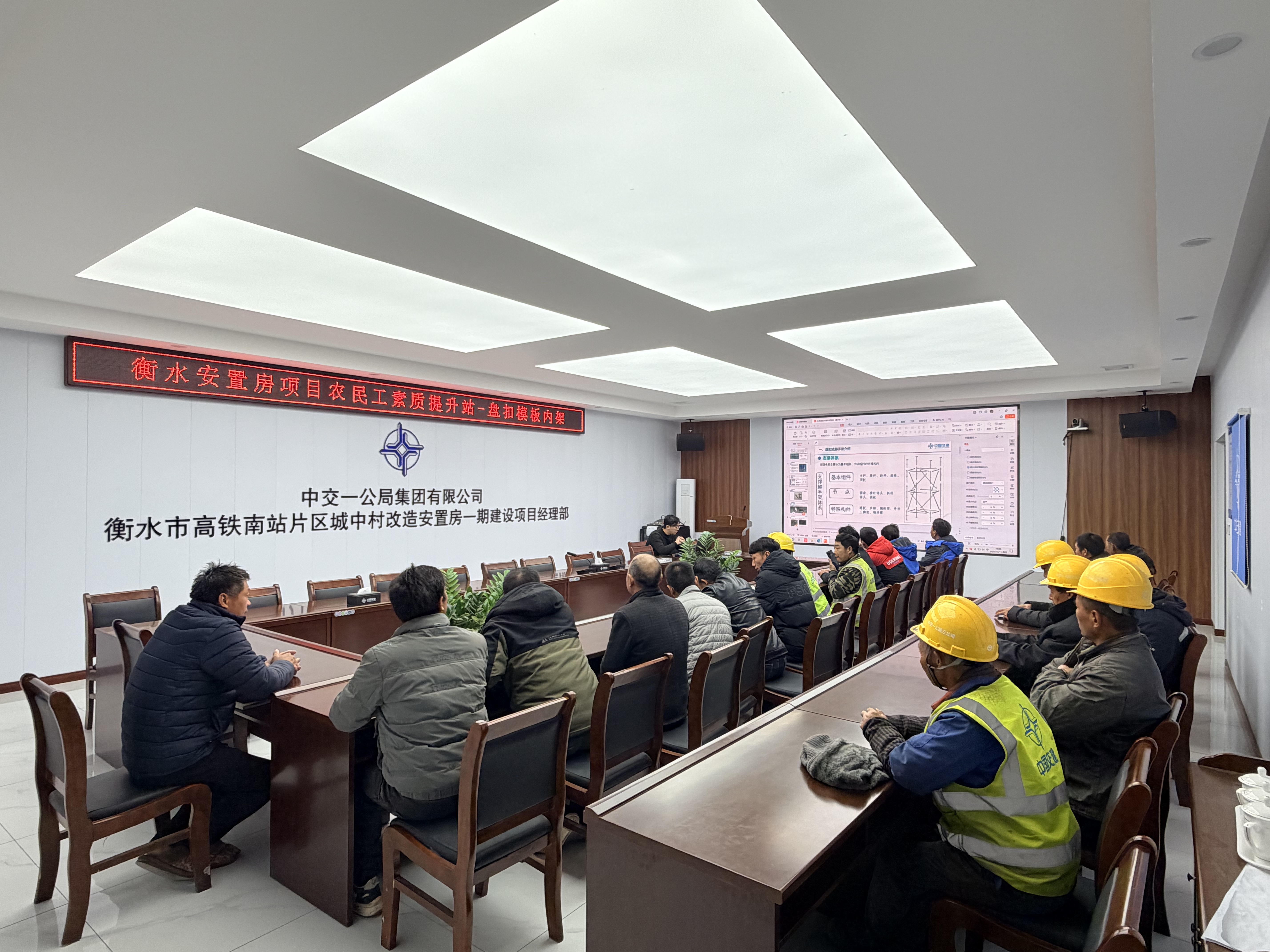 “大家注意,悬挑架斜拉杆安装时仰角不能太小,普通型挑梁斜拉杆仰角要大于55°,斜拉杆下端必须靠近外排脚手立杆……”2月1日晚,桃城区高铁南站片区城中村改造安置房一期建设项目工地,会议室内暖意融融,一场围绕脚手架安全搭设的培训正在进行,20余名工人聚精会神,边听边记。