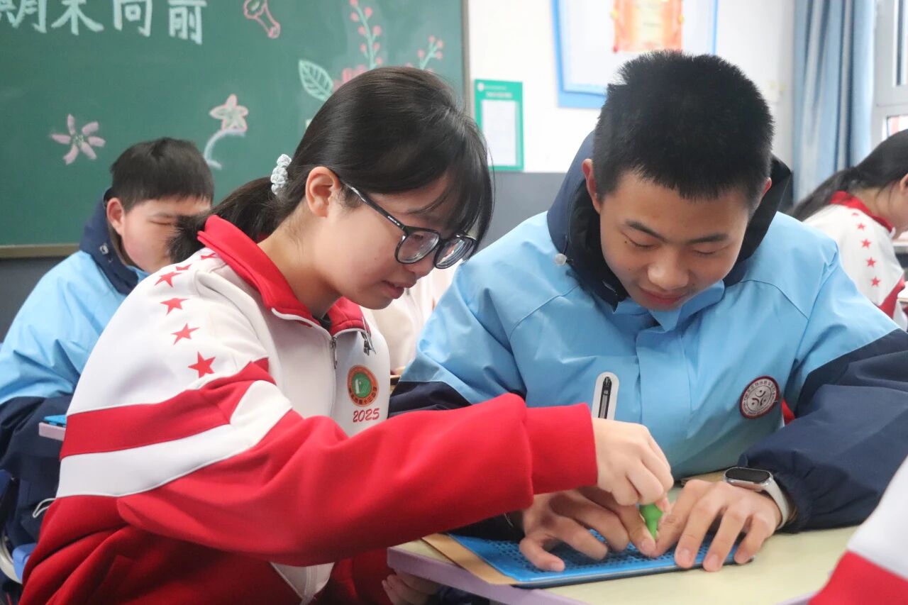 随后,她向我展示了她各学科的课本。我轻轻抚过纸页上均匀凸起的点,看她熟练地用指尖阅读。那一刻,我忽然意识到,每个人都在用自己的方式认识世界。她专注而从容的神情,让我看见了一种沉静而坚韧的力量。