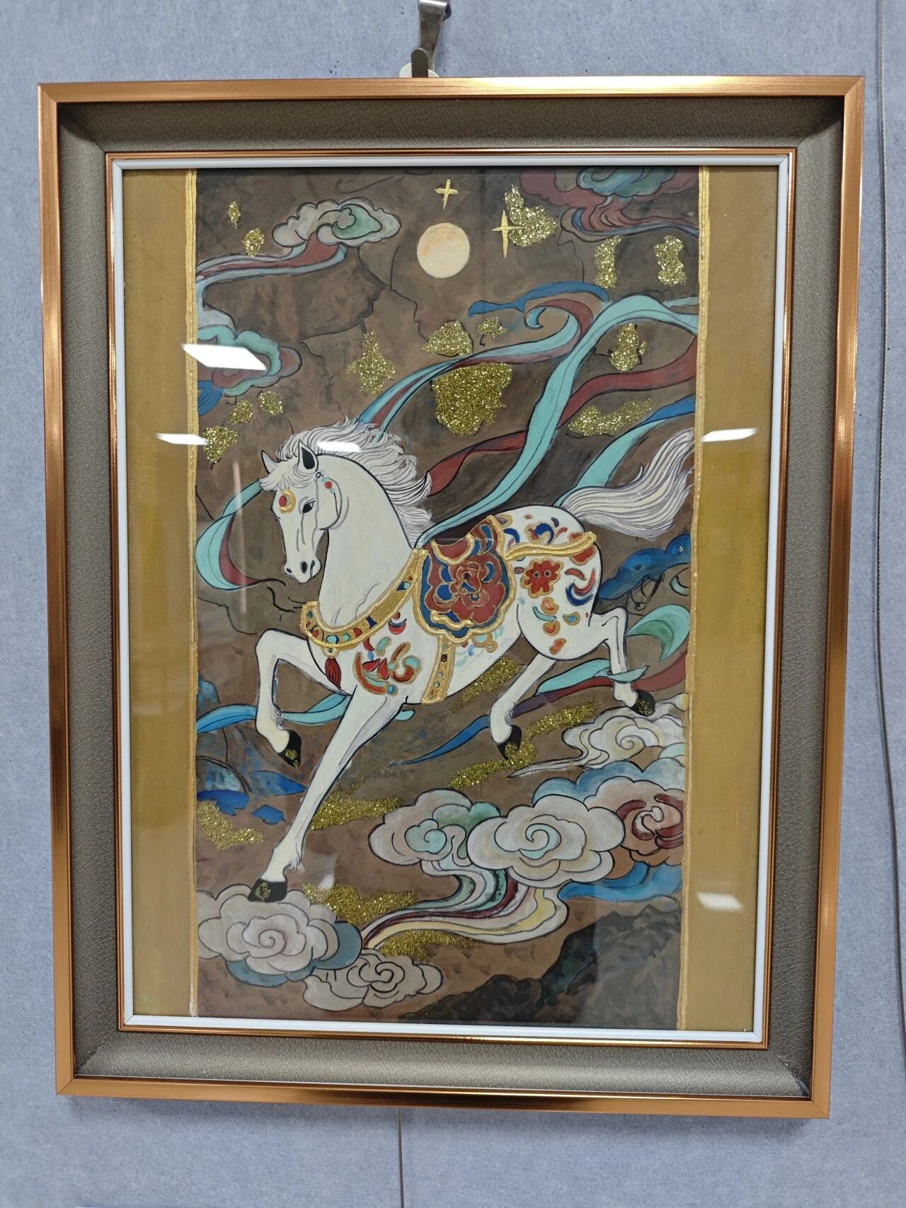 此次展览以马年新春为主题,共展出作品近百幅。展览现场,一幅幅充满童趣与创意的壁画整齐陈列。孩子们以稚嫩却灵动的笔触,描绘了对新年的期待、对家乡的热爱以及对美好生活的向往。作品色彩斑斓,充满活力吸引了众多市民驻足观赏、拍照留念。