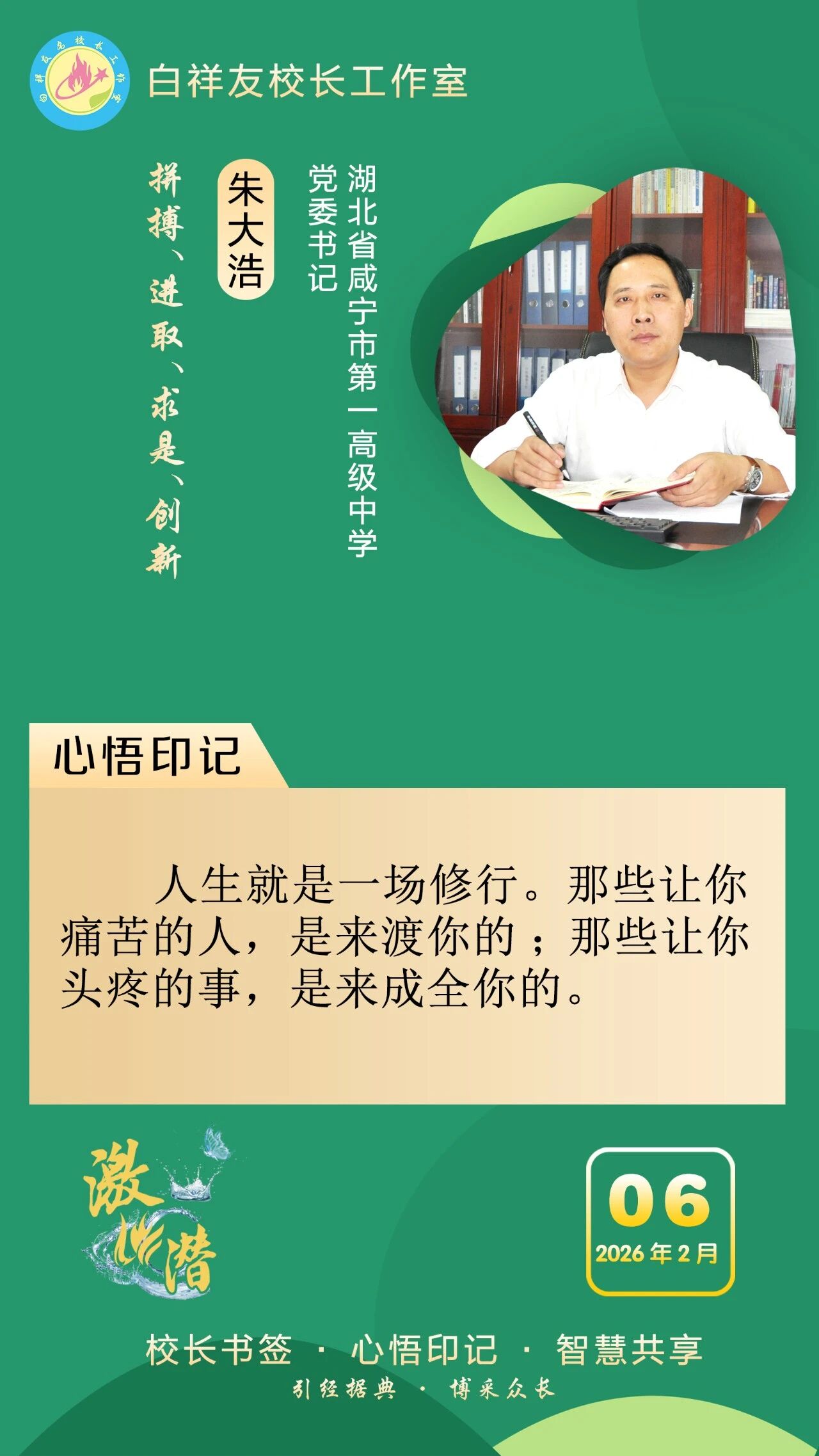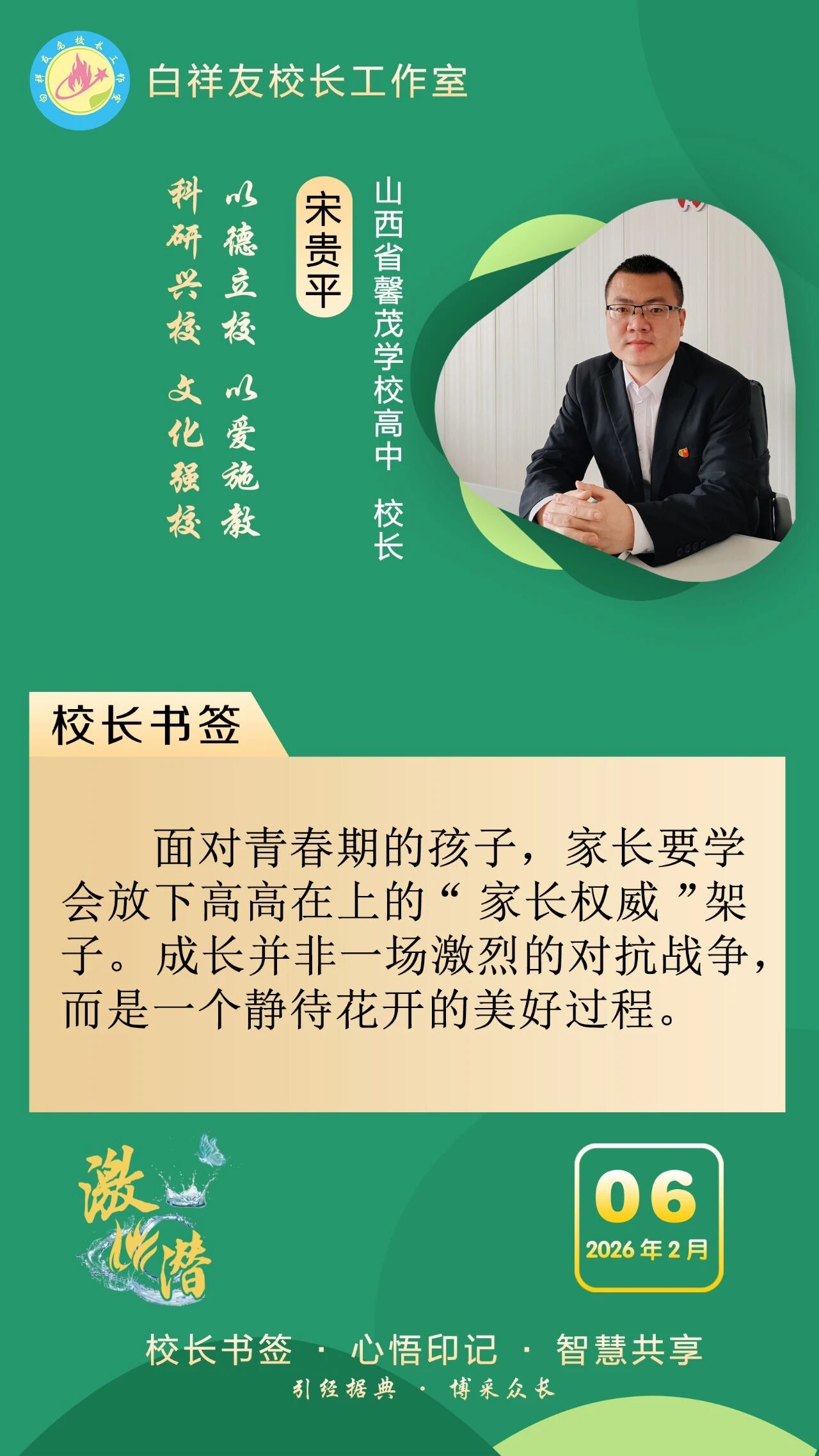 “白祥友校长工作室”成立于2019年4月,是教育部“国培计划”中小学名校长领航工程、河北省首批名校长工作室,目前省内外成员校59所。工作室坚持“资源共享、智慧共融、互助共赢”理念,已成为思想碰撞的交流场,资源共享的品牌站,成果展示的辐射源。 点赞 +1 微博 微信 我要评论 发布 相关推荐 白祥友校长工作室成员新疆实验中学冯永庄校长一行来衡水十三中参观交流 教育大观 03-23 衡水市名校长大讲堂在衡水十三中举办 教育部中小学校长培训办公室于维涛主任作专场报告 教育大观 01-19 白祥友校长工作室成员带队参观衡水十三中 教育大观 2024-05-22 “白祥友校长工作室”成员校石家庄十五中百余教师来衡水十三中参观 教育大观 2024-04-01 热门 一天 三天 一周 1 河北故城:启动“护苗·绿书签”行动 书香校园里播撒“绿色”种子 2 千年塔下诵经典! 衡水市景县举办世界读书日主题活动 3 3月份衡水城市CPI同比上涨2.0% 4 学习进行时|习近平总书记传授的读书法 5 阜城县王集乡开展国家安全教育系列宣传活动 6 十八腾骁 驰骋向远——武邑宏达实验学校第三届成人礼圆满举行 7 衡水举办海外维权专题培训 护航企业稳健出海 8 十八腾骁 驰骋向远——武邑宏达实验学校高二年级第三届成人礼圆满举行 9 聚力 融合 向未来 ——第二届石家庄都市圈党政联席会议侧记 10 习近平谈网络安全和信息化 1 “机械联动+人工补扫” 衡水主城区打响“飞絮治理战” 2 衡水市阜城县漫河镇后李庄村:5天打通35亩大棚“生命线” 3 衡水市文联文艺志愿者息玲玲:深耕青少年文学志愿服务 以文筑梦润芳华 4 桃城区委网信办开展4·15全民国家安全教育日主题宣传活动 5 以爱为灯 照亮乡村阅读路 衡水乡村教师马久爱点亮孩子精神星空 6 河北衡水:大地花海油菜花盛放 金色画卷醉湖城 7 为营商环境清障 故城县严惩职业投诉敲诈 8 衡水市桃城区河西街道广场社区开展“国家安全进社区 便民服务零距离”主题宣传服务活动 9 冀州区开展4·15全民国家安全教育日宣传教育活动 10 “星火照初心·笔墨传精神”创作采风系列活动在衡水市安平县启动 1 第二十一届京津冀开发区“枣复材杯”乒乓球邀请赛暨招商引资推介会在枣强举行 2 “妈妈你在哪儿” 衡水刘风旭寻找走失18年的母亲盼团圆 3 《互联网平台价格行为规则》正式实施 明确禁止“大数据杀熟” 4 “武邑红梨”牵手“硬木雕刻” 双IP联动助推农文旅融合与产业升级 5 阜城县古城镇聚力推广“五位一体”托管模式 激活集体经济发展动能 6 春管正当时 安平多措并举守护冬小麦生长 7 人民之心|“为官一任,造福一方” 8 零碳引领 绿色同行 衡水市“一起益企 订单式服务”绿色低碳发展 专题活动成功举办 9 武邑籍北京声乐老师为衡水建市30周年谱写赞歌 10 孙犁故里:“一荷”文风传世 满卷书香致远——我市文化建设走笔之八 广告 广告 广告 24小时 1 人民之心|“把人民放在心中最高位置” 2 总书记的关切·落地的回响|中国式现代化要靠科技现代化作支撑 3 习近平谈网络安全和信息化 4 衡水举办海外维权专题培训 护航企业稳健出海 5 千年塔下诵经典! 衡水市景县举办世界读书日主题活动 6 聚焦特种设备安全 桃城区市场监管部门“执法+帮扶”模式获认可 7 十八腾骁 驰骋向远——武邑宏达实验学校高二年级第三届成人礼圆满举行 8 十八腾骁 驰骋向远——武邑宏达实验学校第三届成人礼圆满举行 9 秦皇岛以“滨海特色”解锁赛事经济 10 聚力 融合 向未来 ——第二届石家庄都市圈党政联席会议侧记